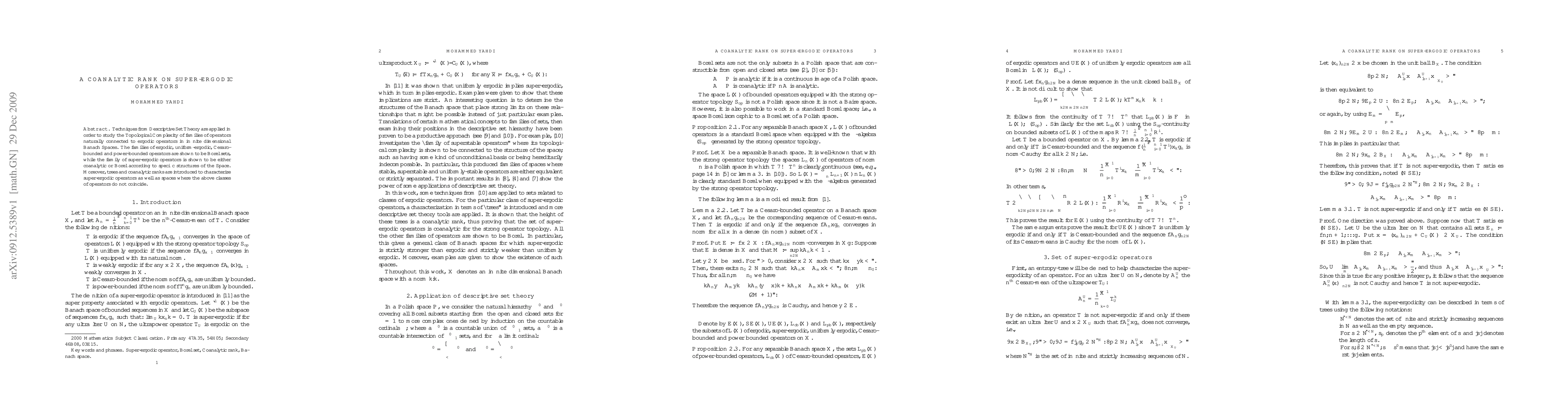 Techniques from Descriptive Set Theory are applied in order to study the Topological Complexity of families of operators naturally connected to ergodic operators in infinite dimensional Banach Spaces. The families of ergodic, uniform-ergodic,Cesaro-bounded and power-bounded operators are shown to be Borel sets, while the family of super-ergodic operators is shown to be either coanalytic or Borel according to specific structures of the Space. Moreover, trees and coanalytic ranks are introduced to characterize super-ergodic operators as well as spaces where the above classes of operators do not coincide.