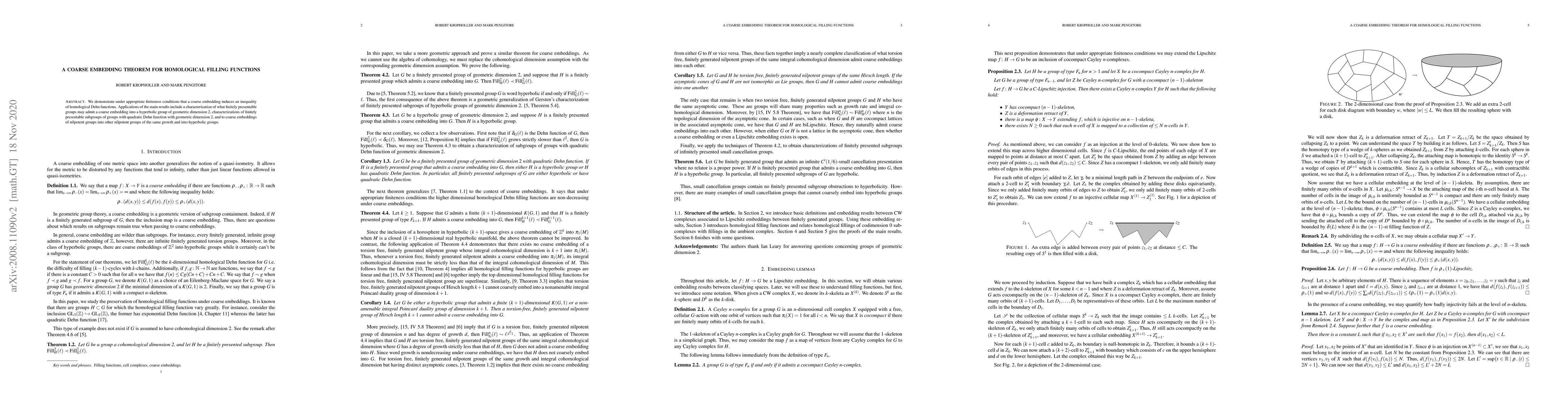 This paper proves that under specific finiteness conditions, a coarse embedding leads to a homological Dehn function inequality. It characterizes finitely presentable groups admitting a coarse embedding into hyperbolic groups with geometric dimension 2.