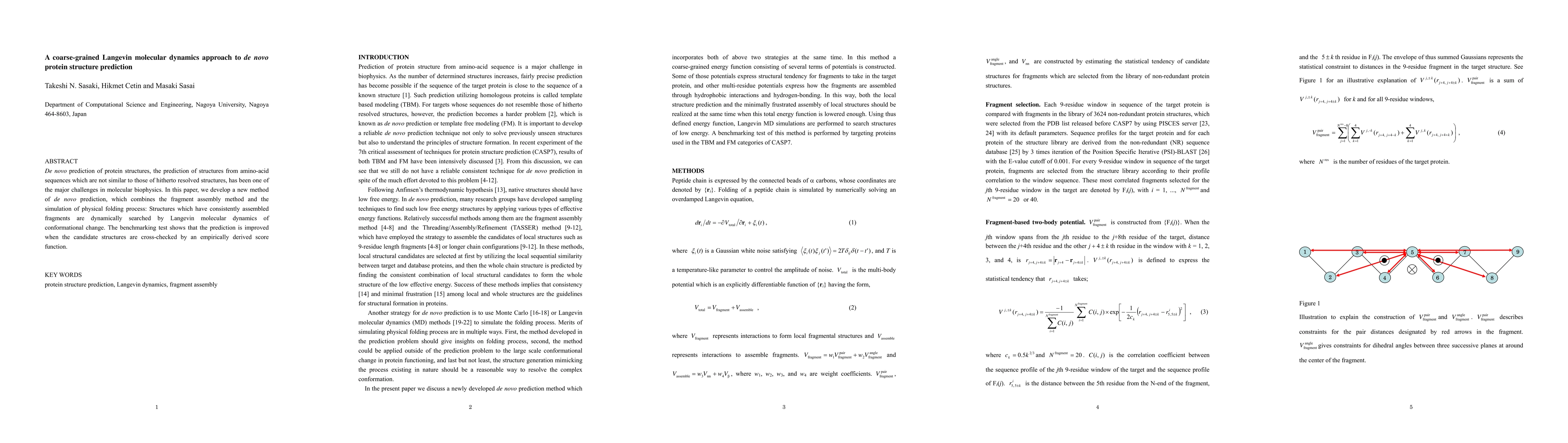 This paper introduces a novel coarse-grained Langevin molecular dynamics approach for de novo protein structure prediction, combining fragment assembly with dynamic folding simulations. The method's accuracy is enhanced by cross-checking predicted structures with an empirically derived score function.