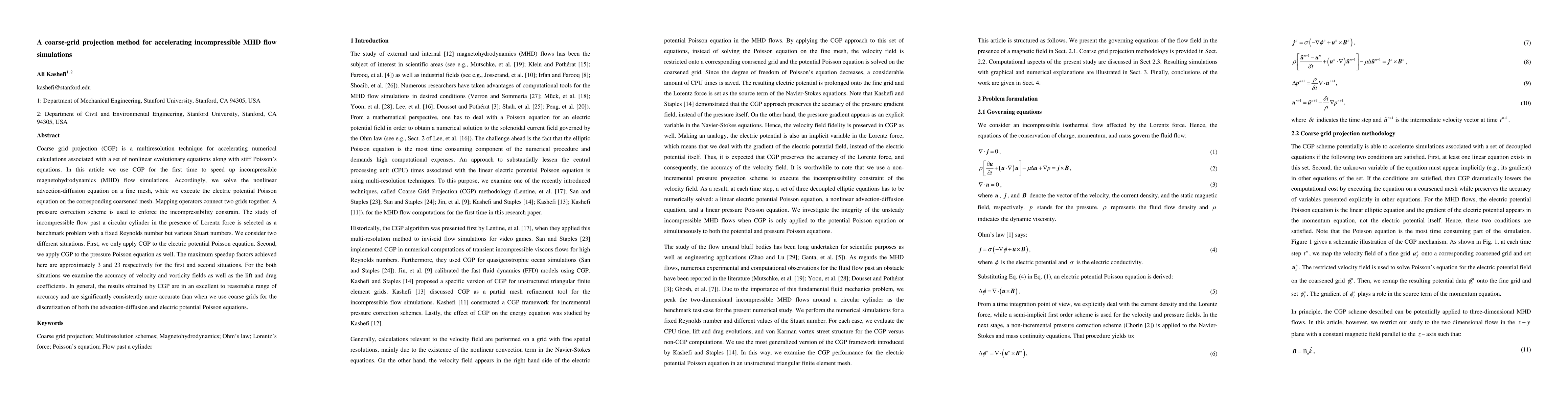 This research introduces Coarse Grid Projection (CGP), a multiresolution method, to accelerate incompressible Magnetohydrodynamics (MHD) flow simulations. Applying CGP to Poisson equations yielded speedup factors of up to 3 and 23 for electric potential and pressure Poisson equations respectively, without significant loss of accuracy.