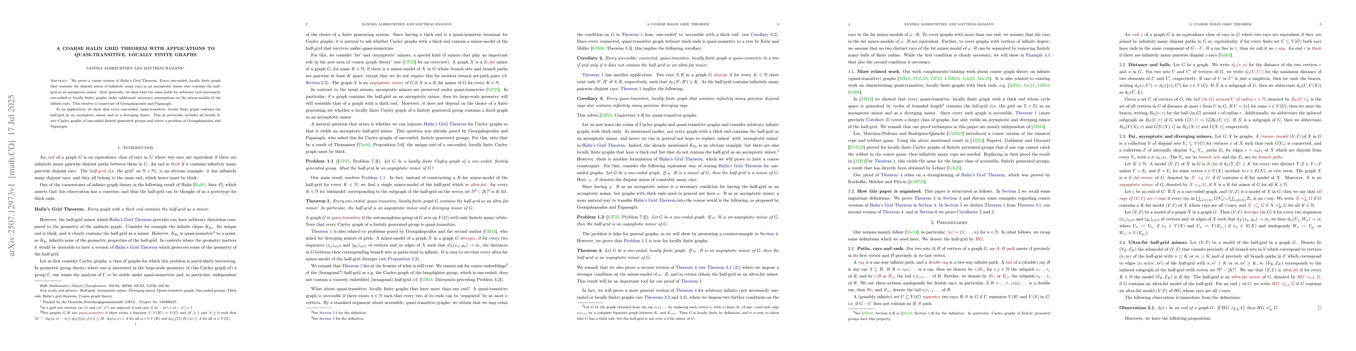We prove a coarse version of Halin's Grid Theorem: Every one-ended, locally finite graph that contains the disjoint union of infinitely many rays as an asymptotic minor also contains the half-grid as an asymptotic minor. More generally, we show that the same holds for arbitrary (not necessarily one-ended or locally finite) graphs under additional, necessary assumptions on the minor-models of the infinite rays. This resolves a conjecture of Georgakopoulos and Papasoglu. As an application, we show that every one-ended, quasi-transitive, locally finite graph contains the half-grid as an asymptotic minor and as a diverging minor. This in particular includes all locally finite Cayley graphs of one-ended finitely generated groups and solves a problem of Georgakopoulos and Papasoglu.
