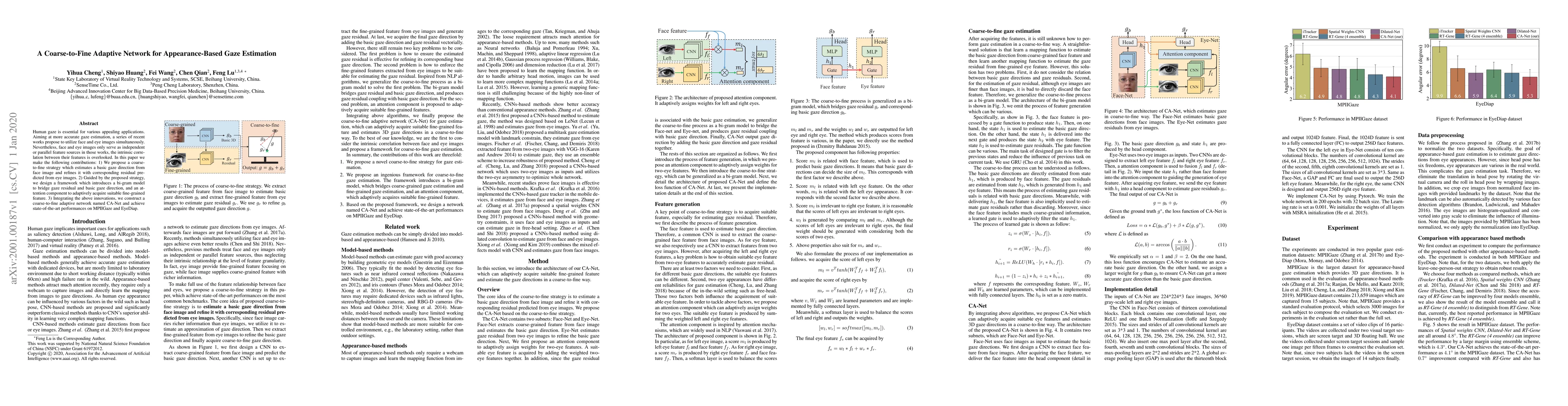 This paper introduces a coarse-to-fine adaptive network named CA-Net for appearance-based gaze estimation, leveraging both face and eye images. It refines initial gaze estimates from face images using residual predictions from eye images, achieving state-of-the-art performance.