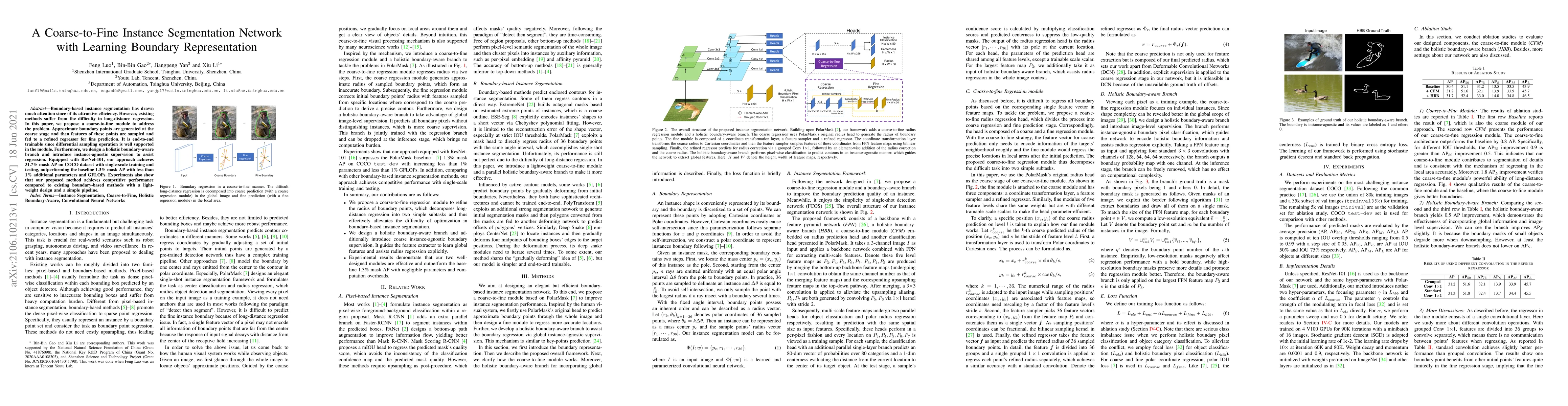 This paper proposes a coarse-to-fine instance segmentation network that addresses long-distance regression issues by generating approximate boundary points at a coarse stage and refining them with a fine regressor. The method achieves superior performance on the COCO dataset with minimal additional computational cost.