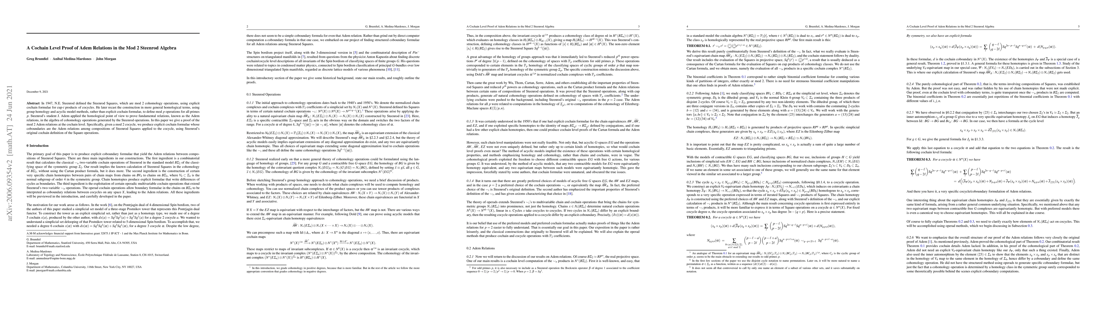 This paper provides a cochain level proof of the Adem relations in the mod 2 Steenrod algebra, utilizing Steenrod's original cochain formulae for Steenrod Squares to explicitly derive the Adem relations among compositions of these operations.