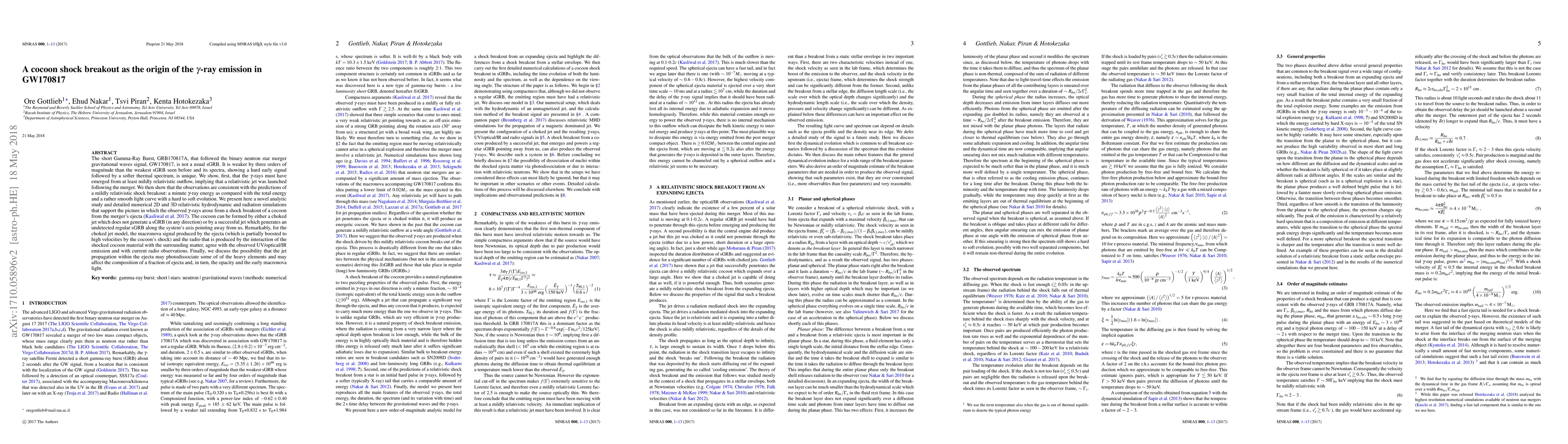 The short Gamma-Ray Burst, GRB170817A, that followed the binary neutron star merger gravitational waves signal, GW170817, is not a usual sGRB. It is weaker by three orders of magnitude than the weakest sGRB seen before and its spectra, showing a hard early signal followed by a softer thermal spectrum, is unique. We show, first, that the $\gamma$-rays must have emerged from at least mildly relativistic outflow, implying that a relativistic jet was launched following the merger. We then show that the observations are consistent with the predictions of a mildly relativistic shock breakout: a minute $\gamma$-ray energy as compared with the total energy and a rather smooth light curve with a hard to soft evolution. We present here a novel analytic study and detailed numerical 2D and 3D relativistic hydrodynamic and radiation simulations that support the picture in which the observed $\gamma$-rays arose from a shock breakout of a cocoon from the merger's ejecta (Kasliwal 2017). The cocoon can be formed by either a choked jet which does not generate a sGRB (in any direction) or by a successful jet which generates an undetected regular sGRB along the system's axis pointing away from us. Remarkably, for the choked jet model, the macronova signal produced by the ejecta (which is partially boosted to high velocities by the cocoon's shock) and the radio that is produced by the interaction of the shocked cocoon material with the surrounding matter, agree with the observed UV/optical/IR emission and with current radio observations. Finally, we discuss the possibility that the jet propagation within the ejecta may photodissociate some of of the heavy elements and may affect the composition of a fraction of ejecta and, in turn, the opacity and the early macronova light.