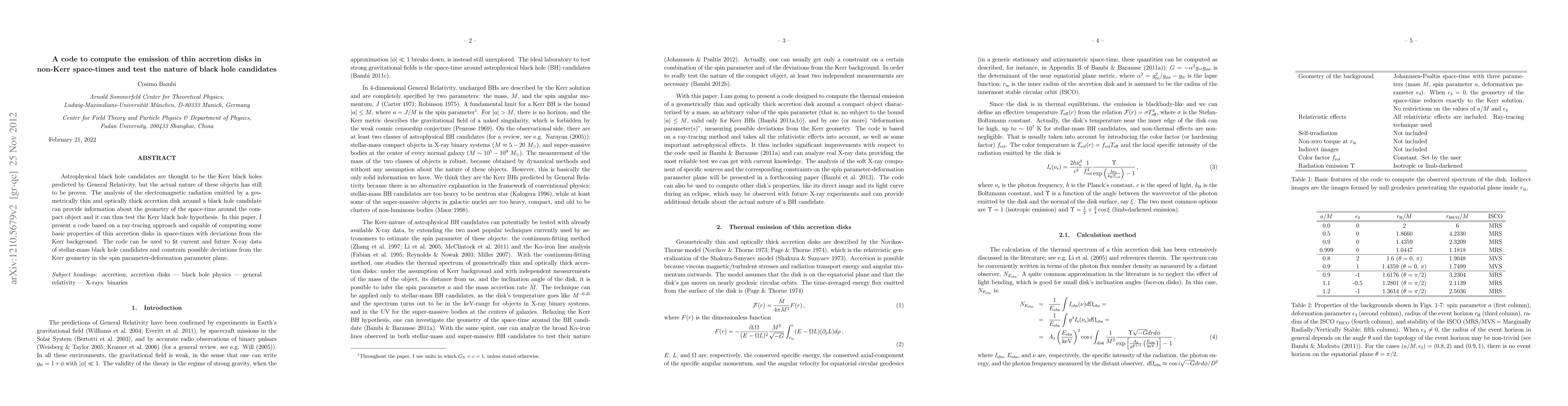 This paper introduces a ray-tracing code to compute the emission from thin accretion disks in non-Kerr space-times, aiming to test the nature of black hole candidates by analyzing their electromagnetic radiation. The code can fit X-ray data to constrain deviations from the Kerr geometry in terms of spin and deformation parameters.