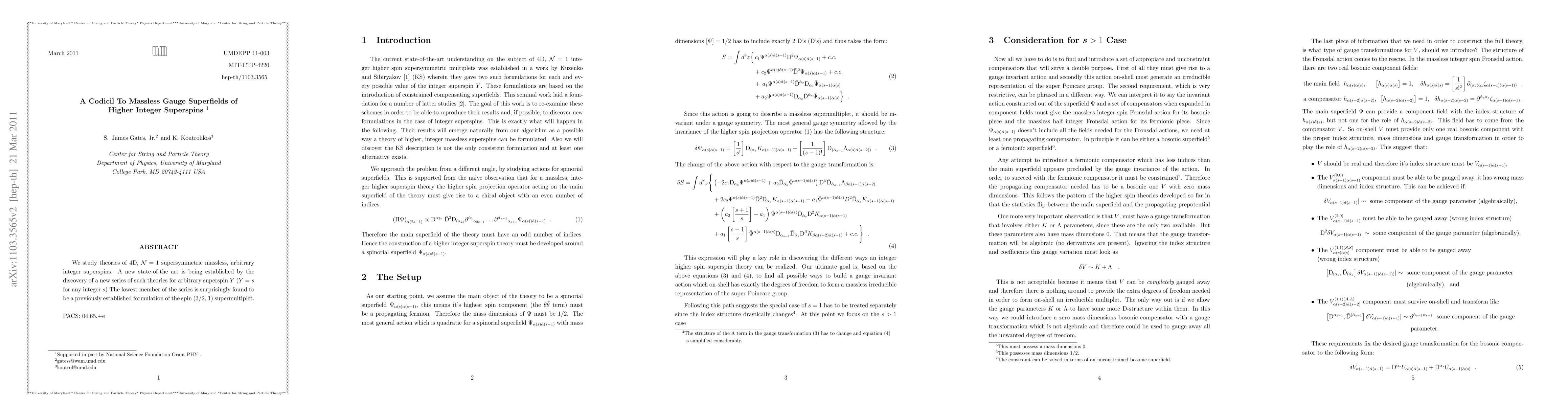 We study theories of 4D, N=1 supersymmetric massless, arbitrary integer superspins. A new state-of-the art is being established by the discovery of a new series of such theories for arbitrary superspin Y (Y=s for any integer s) The lowest member of the series is surprisingly found to be a previously established formulation of the spin (3/2, 1) supermultiplet.