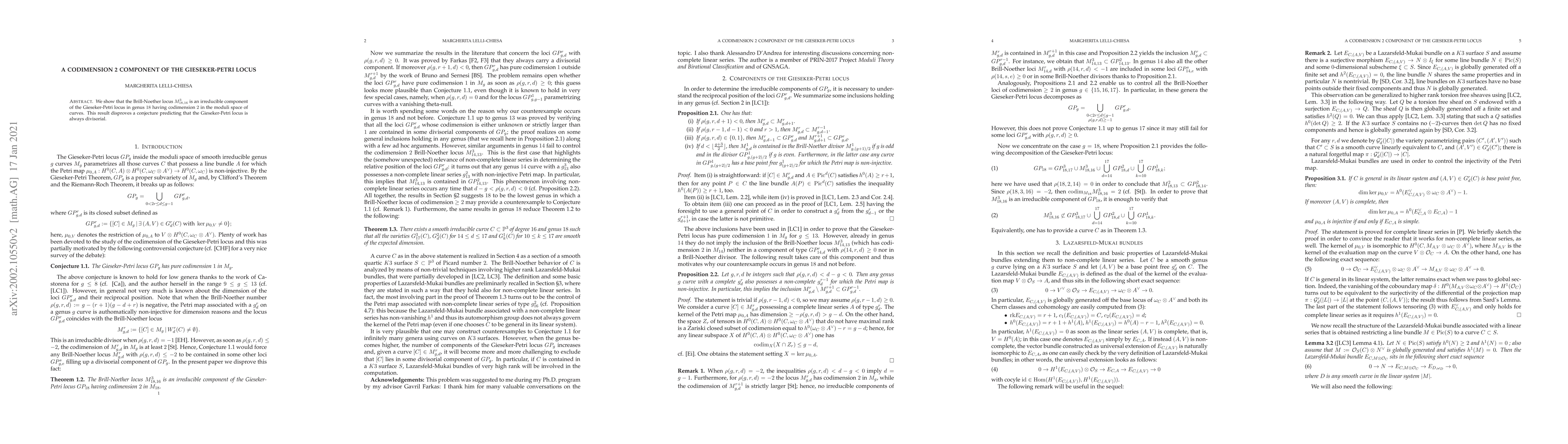 This paper demonstrates that the Brill-Noether locus M^3_{18,16} is an irreducible component of the Gieseker-Petri locus in genus 18 with codimension 2, contradicting the conjecture that the Gieseker-Petri locus is always divisorial.