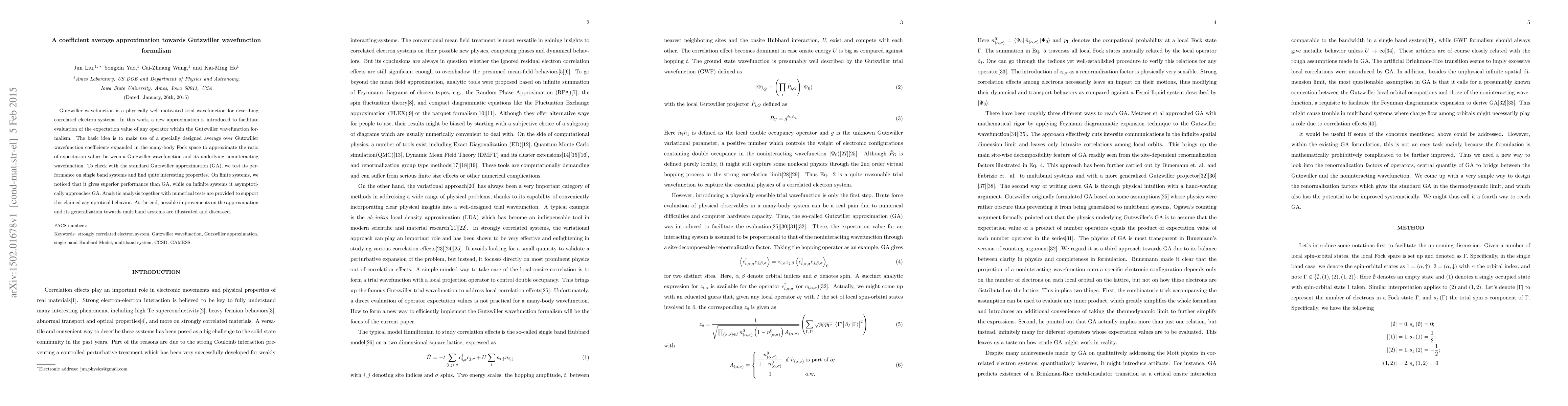 This paper introduces a new coefficient average approximation to simplify the evaluation of operator expectation values within the Gutzwiller wavefunction formalism for correlated electron systems. The proposed method outperforms the standard Gutzwiller approximation on finite systems and asymptotically approaches it on infinite systems, as demonstrated through analytic and numerical tests.