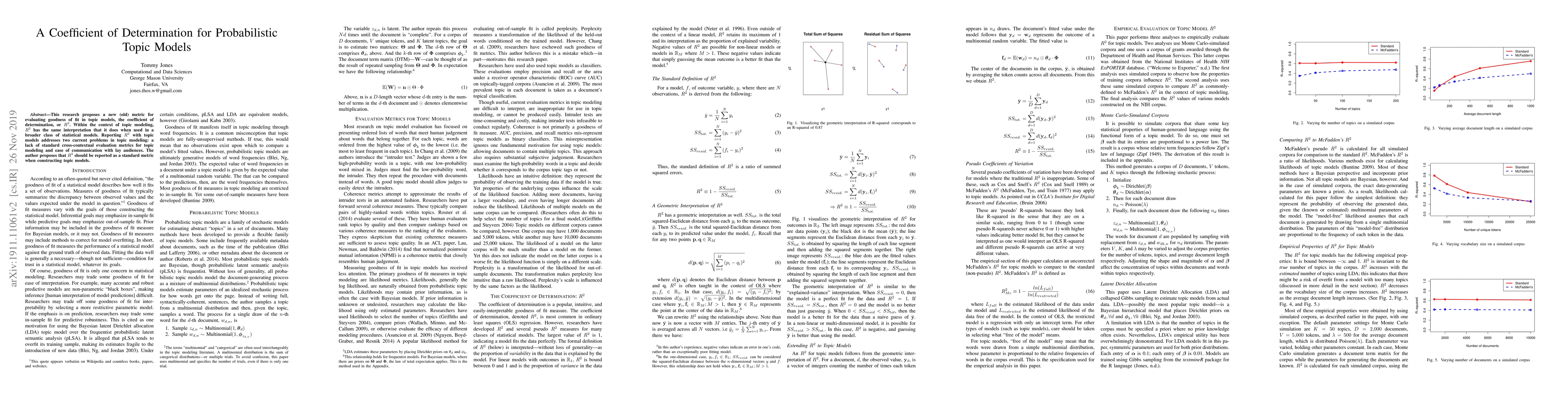 This paper introduces a coefficient of determination, $R^2$, for evaluating the fit of probabilistic topic models, addressing the lack of standard evaluation metrics and facilitating communication with non-experts. The author advocates for $R^2$ to become a standard metric in topic modeling.