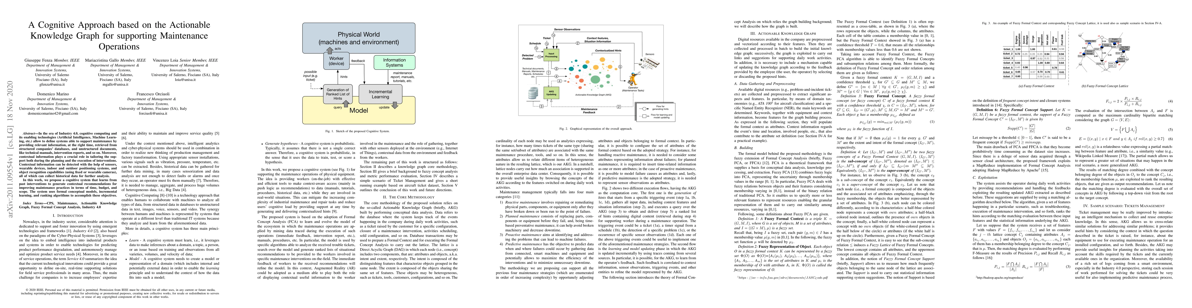 In the era of Industry 4.0, cognitive computing and its enabling technologies (Artificial Intelligence, Machine Learning, etc.) allow to define systems able to support maintenance by providing relevant information, at the right time, retrieved from structured companies' databases, and unstructured documents, like technical manuals, intervention reports, and so on. Moreover, contextual information plays a crucial role in tailoring the support both during the planning and the execution of interventions. Contextual information can be detected with the help of sensors, wearable devices, indoor and outdoor positioning systems, and object recognition capabilities (using fixed or wearable cameras), all of which can collect historical data for further analysis. In this work, we propose a cognitive system that learns from past interventions to generate contextual recommendations for improving maintenance practices in terms of time, budget, and scope. The system uses formal conceptual models, incremental learning, and ranking algorithms to accomplish these objectives.