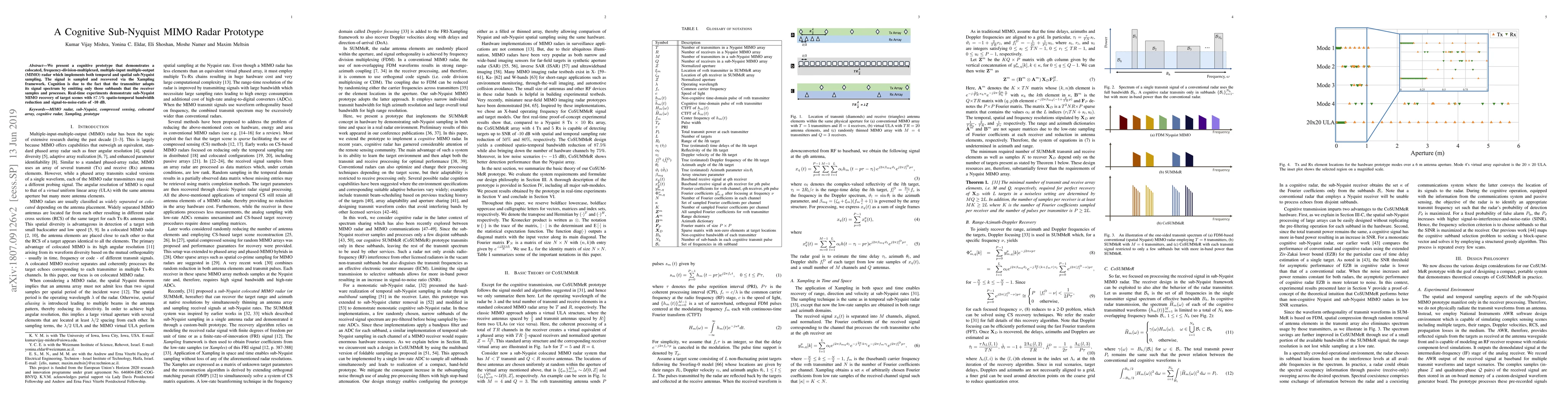 We present a cognitive prototype that demonstrates a colocated, frequency-division-multiplexed, multiple-input multiple-output (MIMO) radar which implements both temporal and spatial sub-Nyquist sampling. The signal is sampled and recovered via the Xampling framework. Cognition is due to the fact that the transmitter adapts its signal spectrum by emitting only those subbands that the receiver samples and processes. Real-time experiments demonstrate sub-Nyquist MIMO recovery of target scenes with 87.5% spatio-temporal bandwidth reduction and signal-to-noise-ratio of -10 dB.