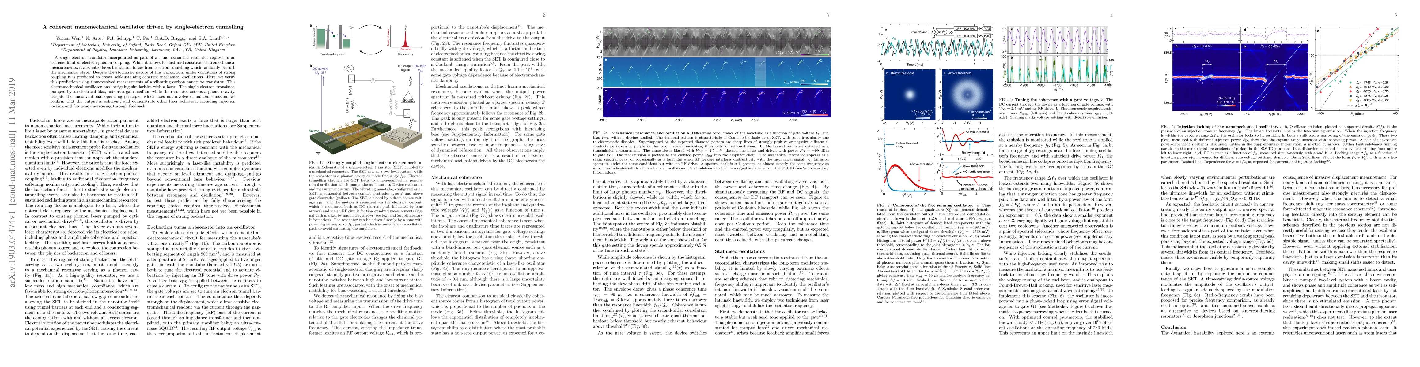 Summary: Researchers demonstrate a coherent nanomechanical oscillator using a single-electron transistor in a carbon nanotube resonator, verifying predictions of self-sustaining mechanical oscillations due to strong electron-phonon coupling. Despite no stimulated emission, the system exhibits laser-like behaviors such as injection locking and frequency narrowing.