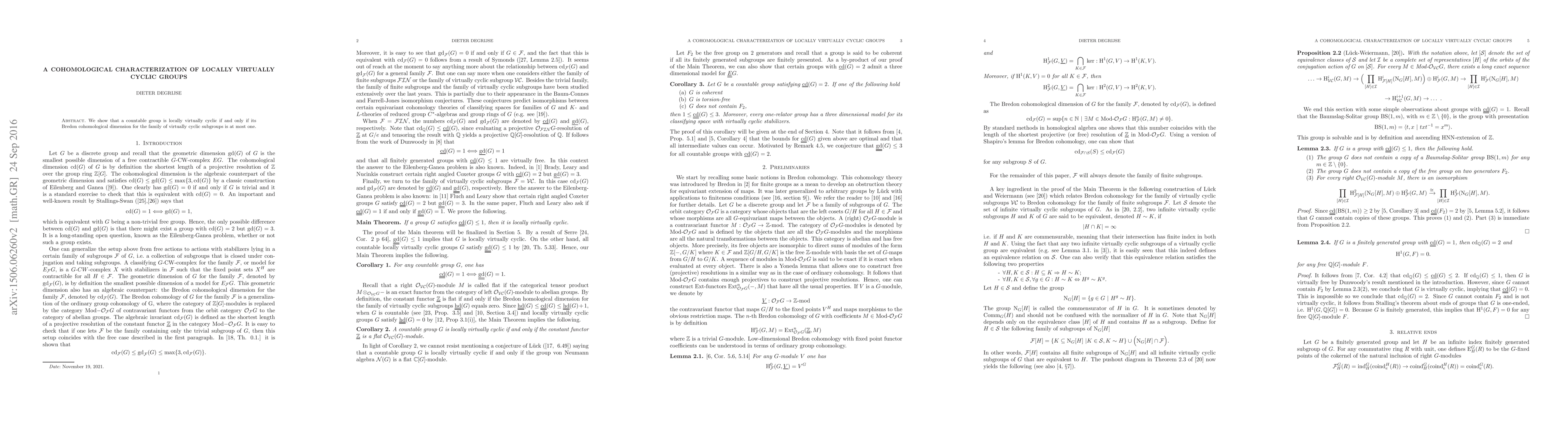 A countable group is locally virtually cyclic if its Bredon cohomological dimension for virtually cyclic subgroups is at most one.