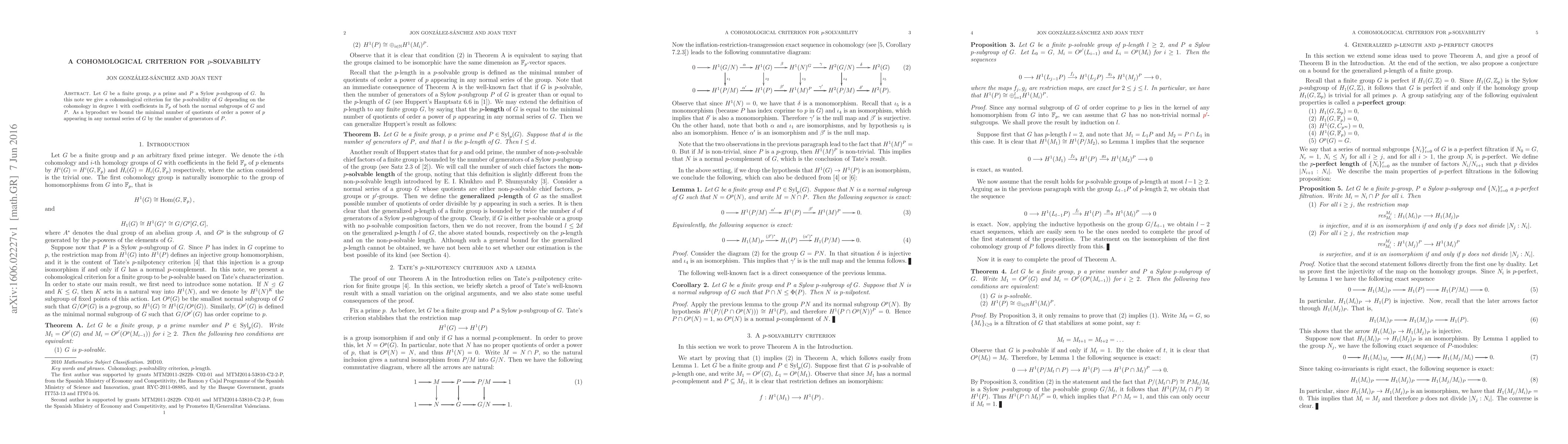 This paper introduces a cohomological criterion for determining if a finite group is $p$-solvable based on the cohomology of its normal subgroups and Sylow $p$-subgroup. It provides a bound on the number of quotients of order a power of $p$ in any normal series of the group.