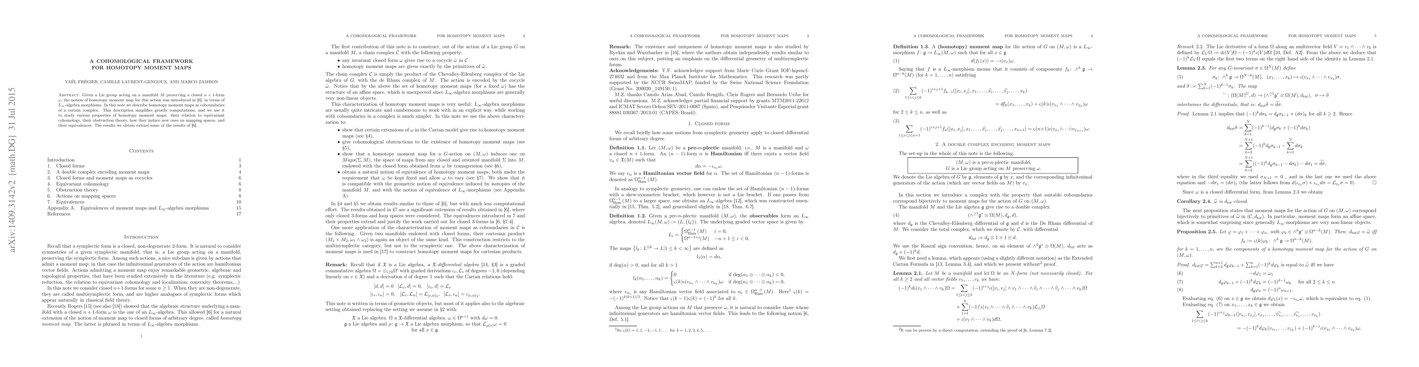 This paper introduces a cohomological framework for homotopy moment maps, describing them as coboundaries of a specific complex, which simplifies computations and extends the understanding of their properties, including their relation to equivariant cohomology and their behavior under mapping spaces.