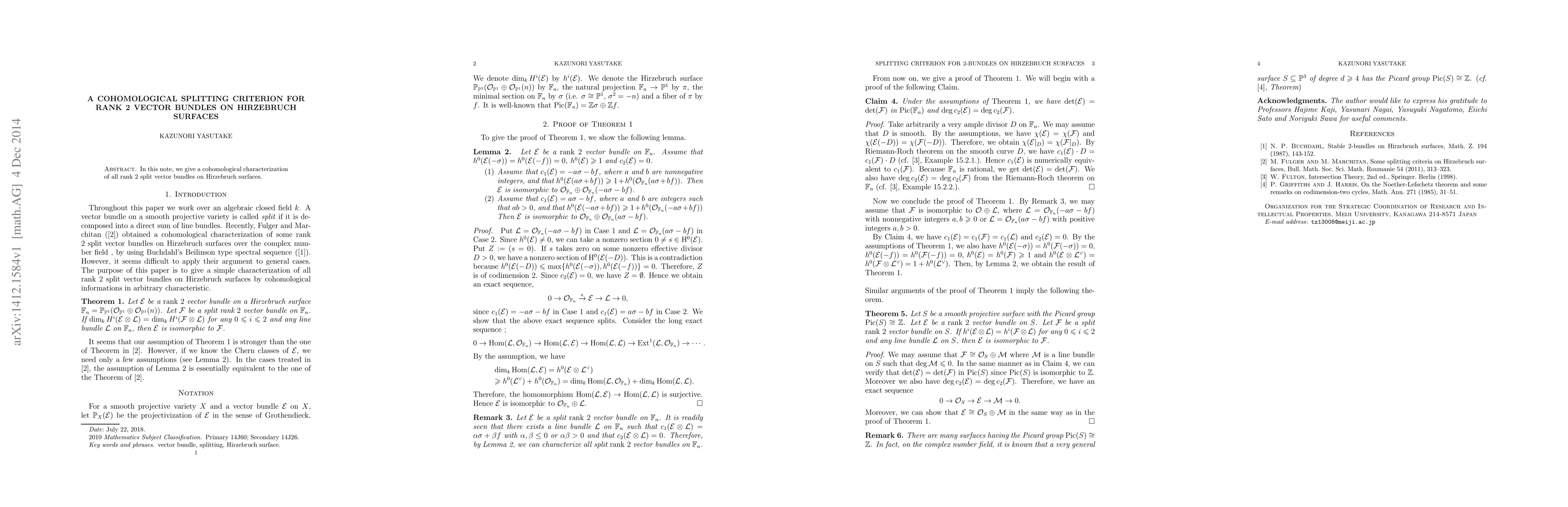 Summary: This research provides a cohomological criterion to identify all rank 2 split vector bundles on Hirzebruch surfaces, offering a new perspective on their structure. The study focuses on cohomological properties to distinguish these vector bundles.