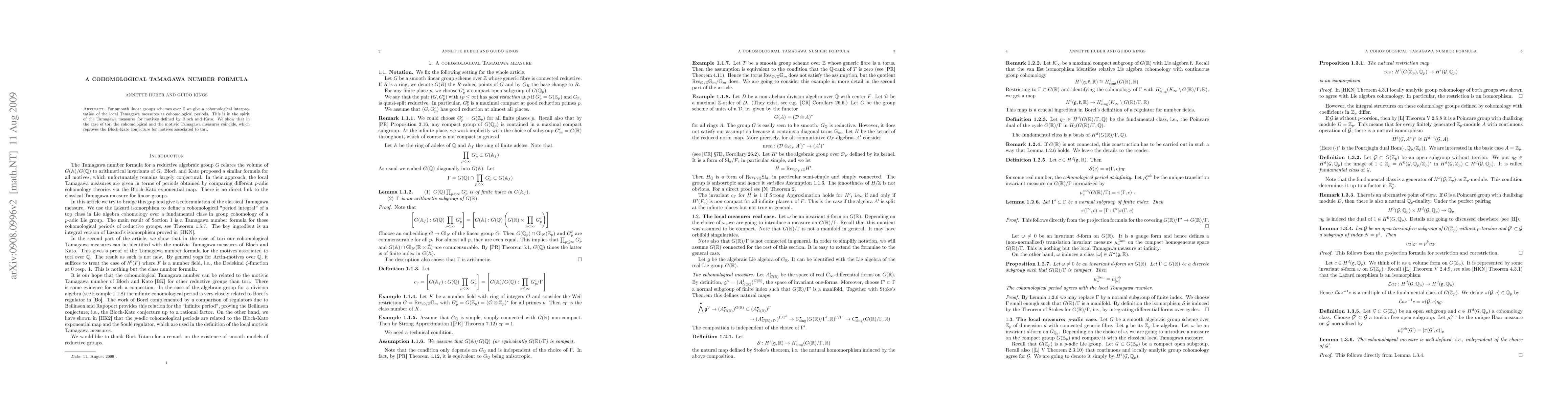 For smooth linear group schemes over $\bbZ$ we give a cohomological interpretation of the local Tamagawa measures as cohomological periods. This is in the spirit of the Tamagawa measures for motives defined by Bloch and Kato. We show that in the case of tori the cohomological and the motivic Tamagawa measures coincide, which reproves the Bloch-Kato conjecture for motives associated to tori.