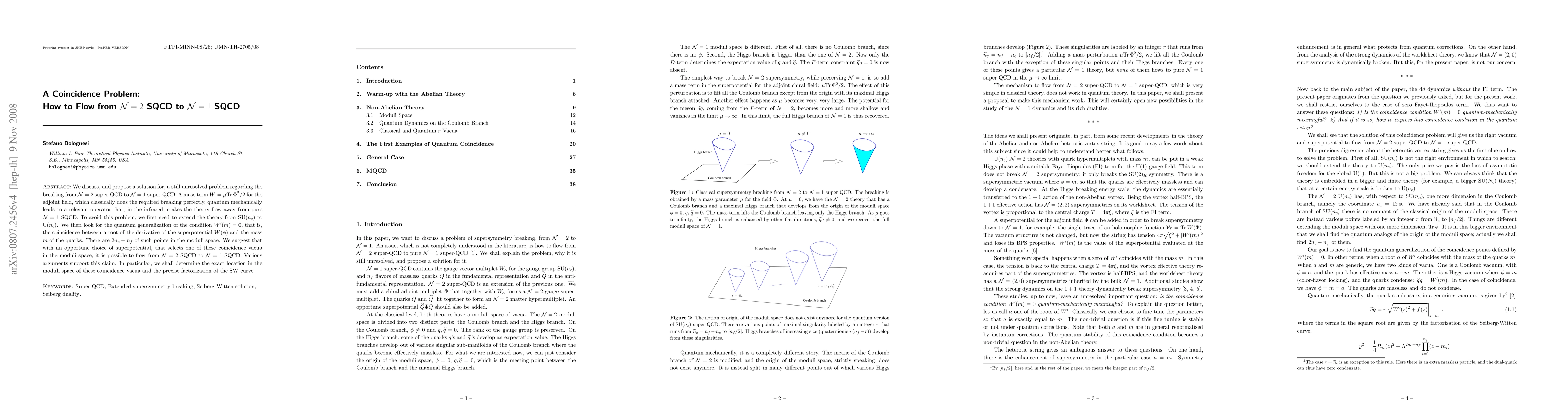 We discuss, and propose a solution for, a still unresolved problem regarding the breaking from $\N=2$ super-QCD to $\N=1$ super-QCD. A mass term $W=\mu \Tr \Phi^2 / 2$ for the adjoint field, which classically does the required breaking perfectly, quantum mechanically leads to a relevant operator that, in the infrared, makes the theory flow away from pure $\N=1$ SQCD. To avoid this problem, we first need to extend the theory from $\SU (n_c)$ to $\U (n_c)$. We then look for the quantum generalization of the condition $W^{\prime}(m)=0$, that is, the coincidence between a root of the derivative of the superpotential $W(\phi)$ and the mass $m$ of the quarks. There are $2n_c -n_f$ of such points in the moduli space. We suggest that with an opportune choice of superpotential, that selects one of these coincidence vacua in the moduli space, it is possible to flow from $\N=2$ SQCD to $\N=1$ SQCD. Various arguments support this claim. In particular, we shall determine the exact location in the moduli space of these coincidence vacua and the precise factorization of the SW curve.
