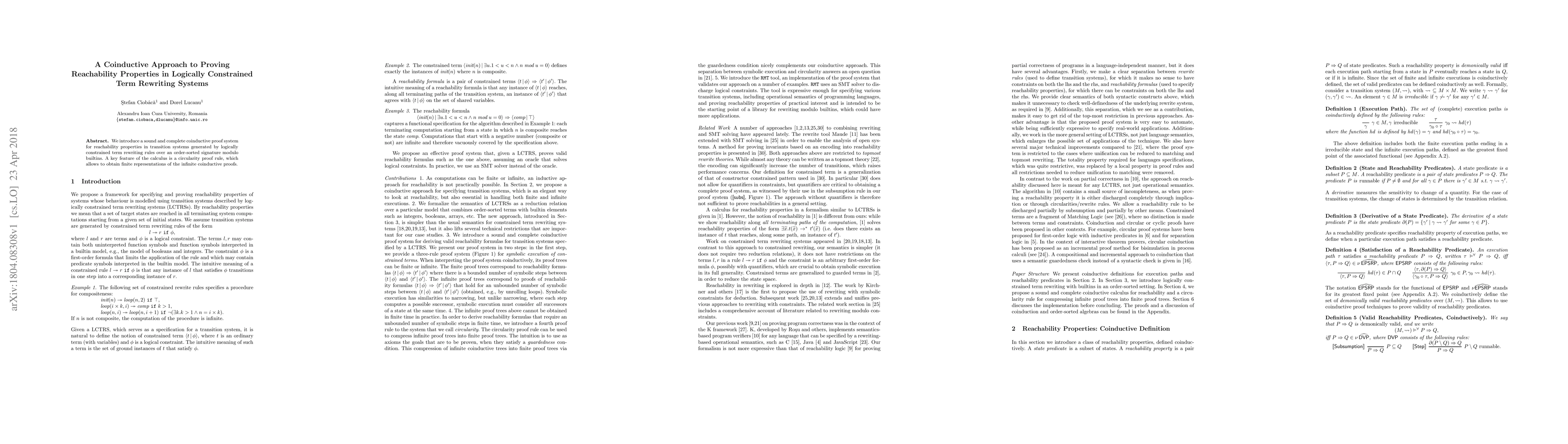 This paper presents a coinductive proof system for verifying reachability in transition systems defined by logically constrained term rewriting rules, using a circularity proof rule to manage infinite proofs with finite representations.