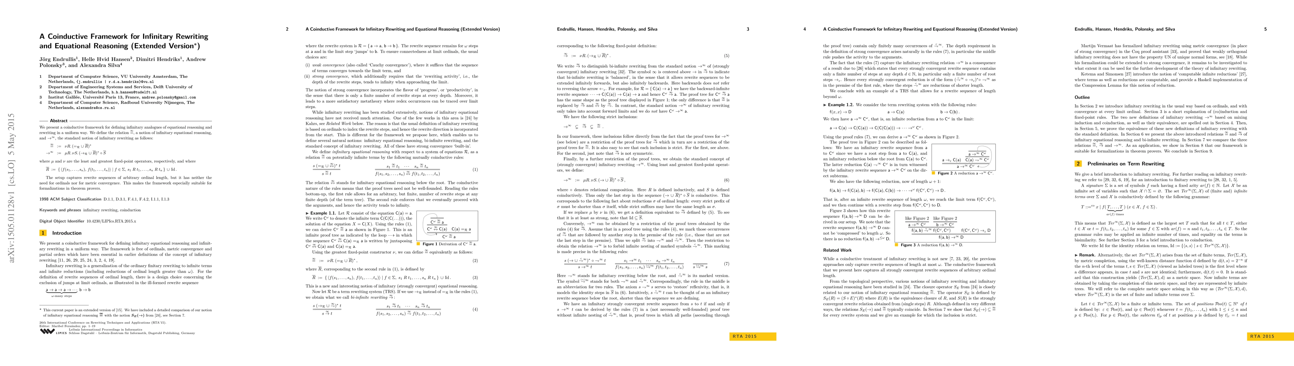 This paper introduces a coinductive framework for defining infinitary equational reasoning and rewriting, using mu and nu operators to manage infinite sequences without requiring ordinals or metric convergence, making it suitable for formalization in theorem provers.