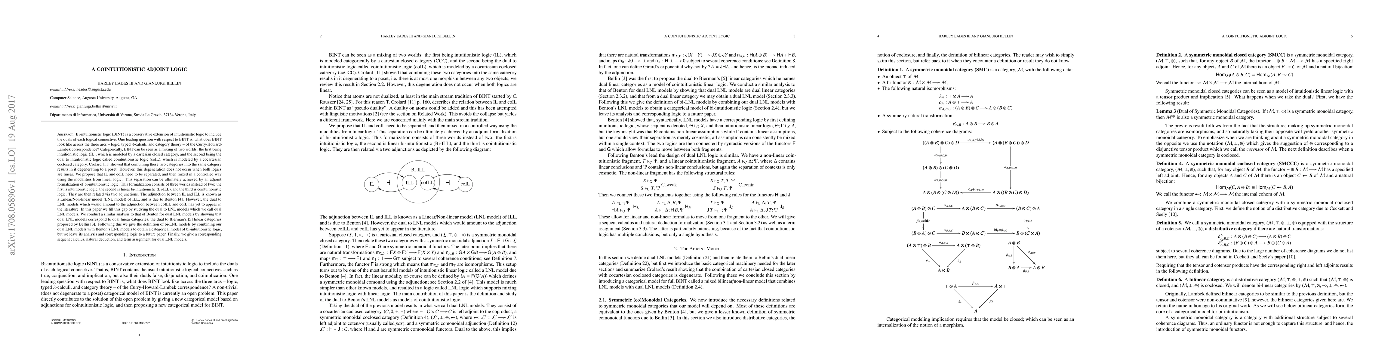 This paper explores the integration of intuitionistic and cointuitionistic logics within the framework of linear logic, proposing an adjoint formalization of bi-intuitionistic logic. It introduces dual LNL models corresponding to dual linear categories, and defines bi-LNL models to unify intuitionistic, linear bi-intuitionistic, and cointuitionistic logics, accompanied by a sequent calculus, natural deduction, and term assignment.