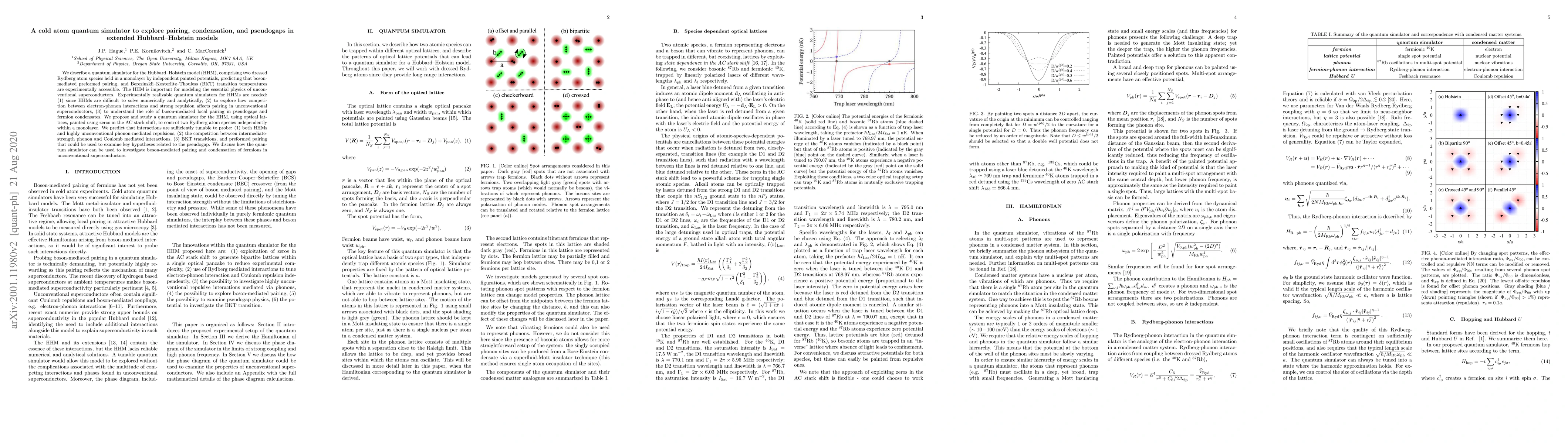 Development of a quantum simulator based on optical lattices and Rydberg atom species to study the Hubbard--Holstein model, enabling the tuning of interactions for probing pairing, condensation, and pseudogaps in complex systems.