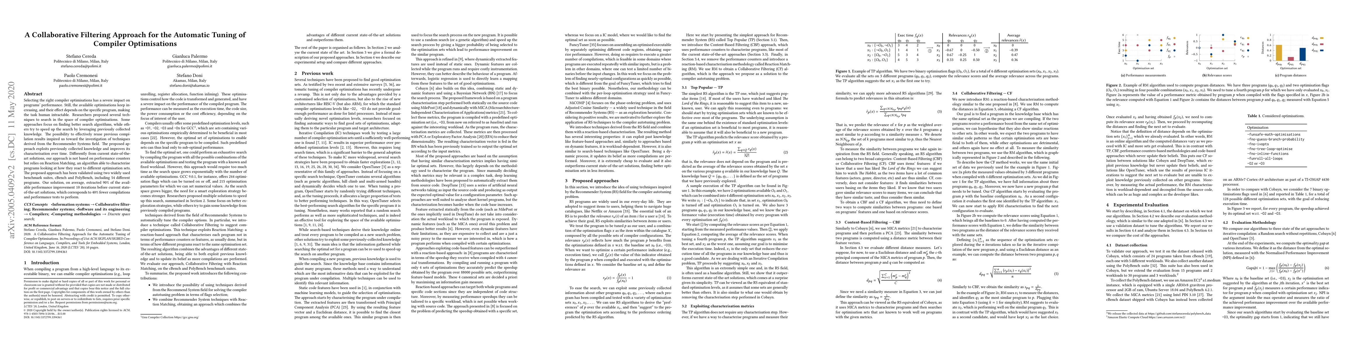 This paper proposes a collaborative filtering approach using Reaction Matching to automatically tune compiler optimisations, leveraging previously collected compilation results to enhance performance. The method achieves 90% of potential performance gains on average 10 iterations ahead of current state-of-the-art, reducing necessary compilations and tests by 40%.
