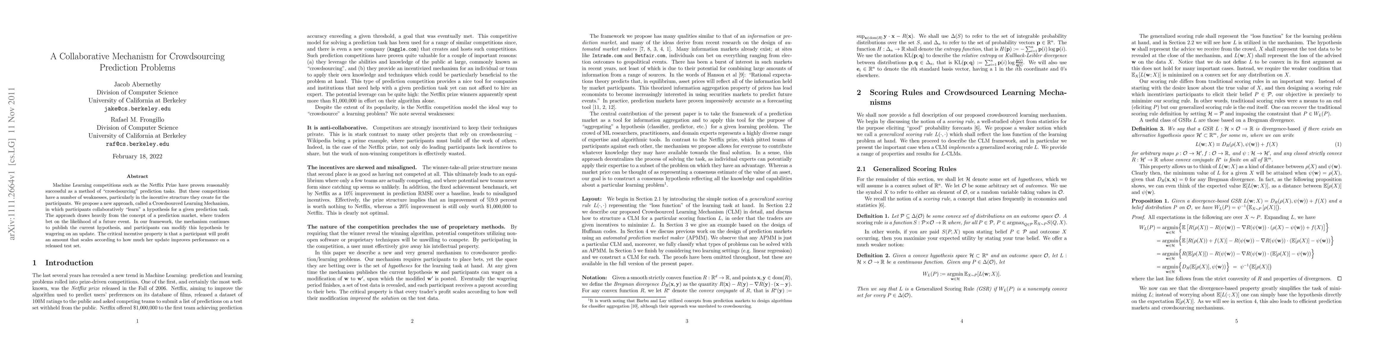Machine Learning competitions such as the Netflix Prize have proven reasonably successful as a method of "crowdsourcing" prediction tasks. But these competitions have a number of weaknesses, particularly in the incentive structure they create for the participants. We propose a new approach, called a Crowdsourced Learning Mechanism, in which participants collaboratively "learn" a hypothesis for a given prediction task. The approach draws heavily from the concept of a prediction market, where traders bet on the likelihood of a future event. In our framework, the mechanism continues to publish the current hypothesis, and participants can modify this hypothesis by wagering on an update. The critical incentive property is that a participant will profit an amount that scales according to how much her update improves performance on a released test set.