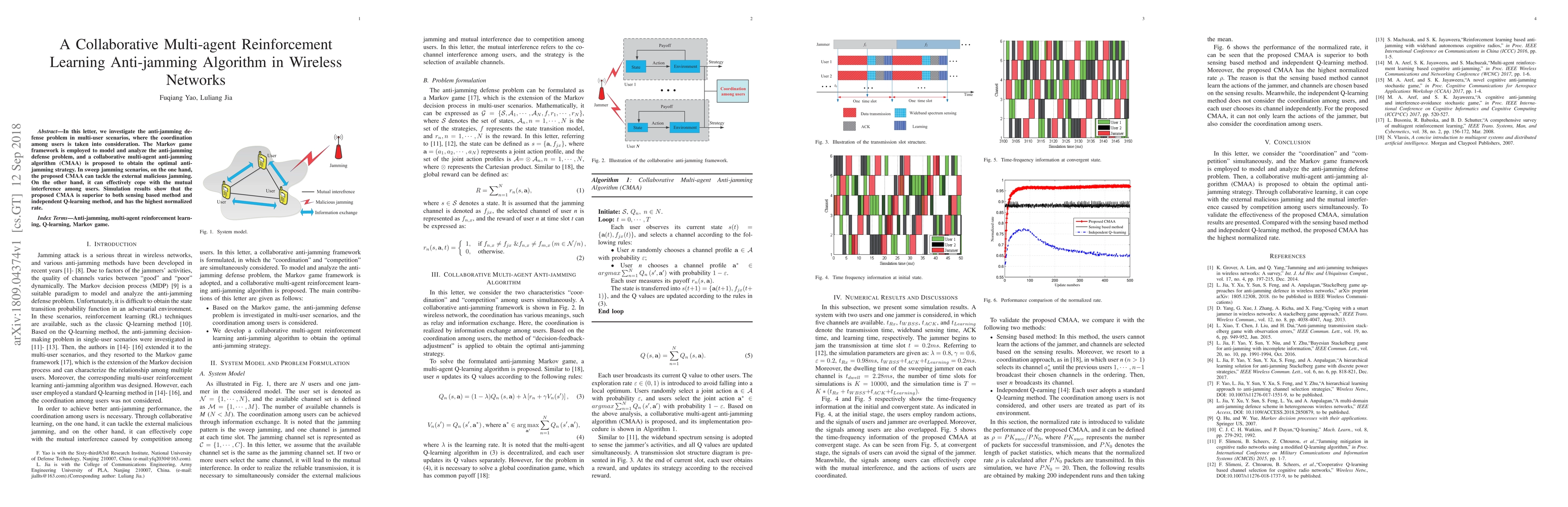In this letter, we investigate the anti-jamming defense problem in multi-user scenarios, where the coordination among users is taken into consideration. The Markov game framework is employed to model and analyze the anti-jamming defense problem, and a collaborative multi-agent anti-jamming algorithm (CMAA) is proposed to obtain the optimal anti-jamming strategy. In sweep jamming scenarios, on the one hand, the proposed CMAA can tackle the external malicious jamming. On the other hand, it can effectively cope with the mutual interference among users. Simulation results show that the proposed CMAA is superior to both sensing based method and independent Q-learning method, and has the highest normalized rate.