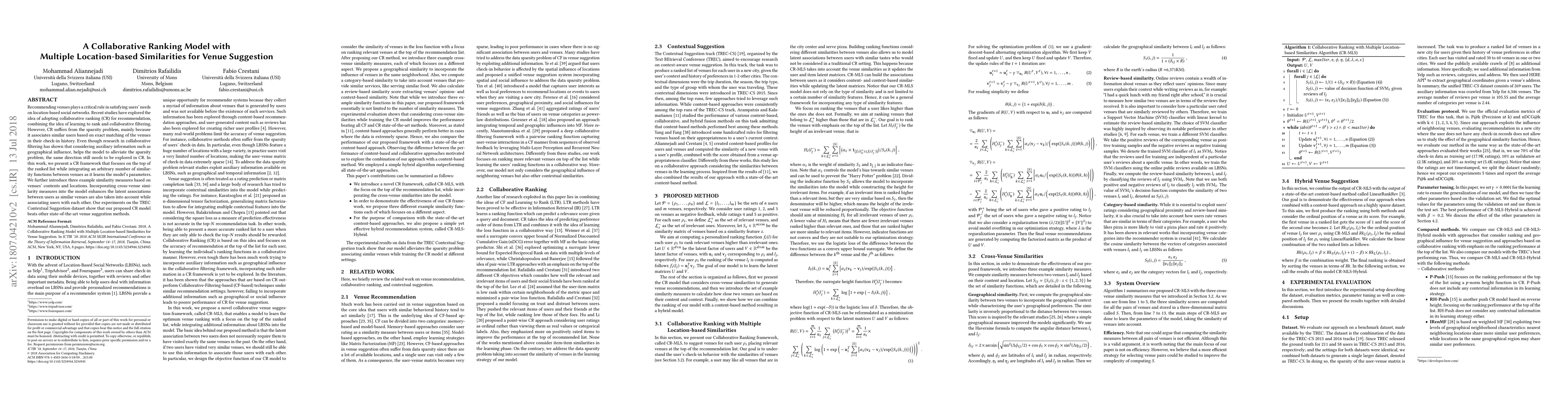 A new collaborative ranking model is proposed to recommend venues on location-based social networks, addressing the sparsity problem by integrating multiple location-based similarities. The model outperforms other state-of-the-art methods in venue suggestion tasks.