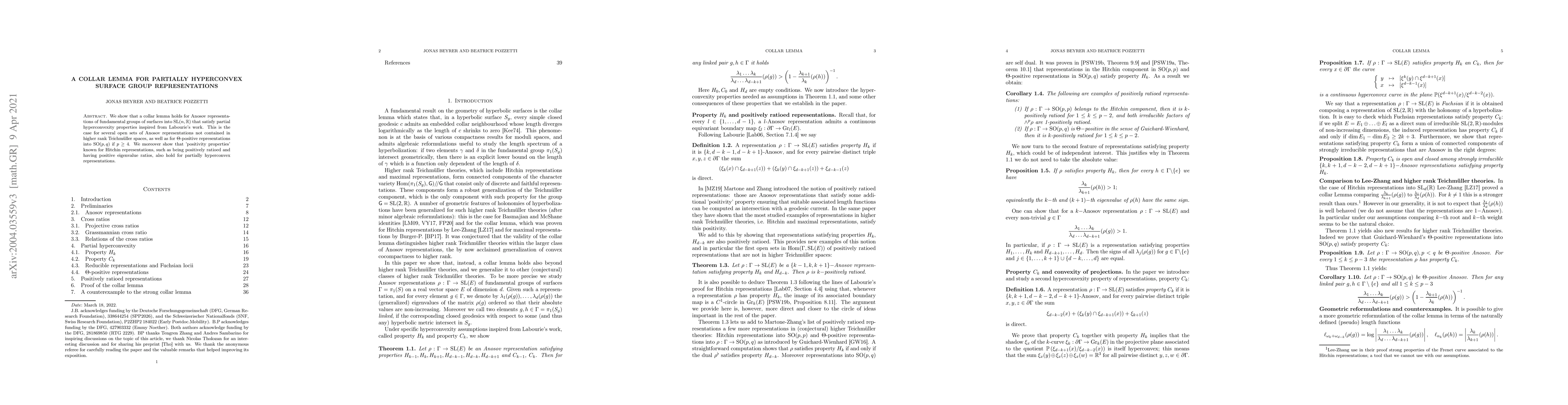 Researchers establish a collar lemma for partially hyperconvex surface group representations, showing they hold for various types of Anosov representations into certain Lie groups, with implications for understanding the properties of these representations.