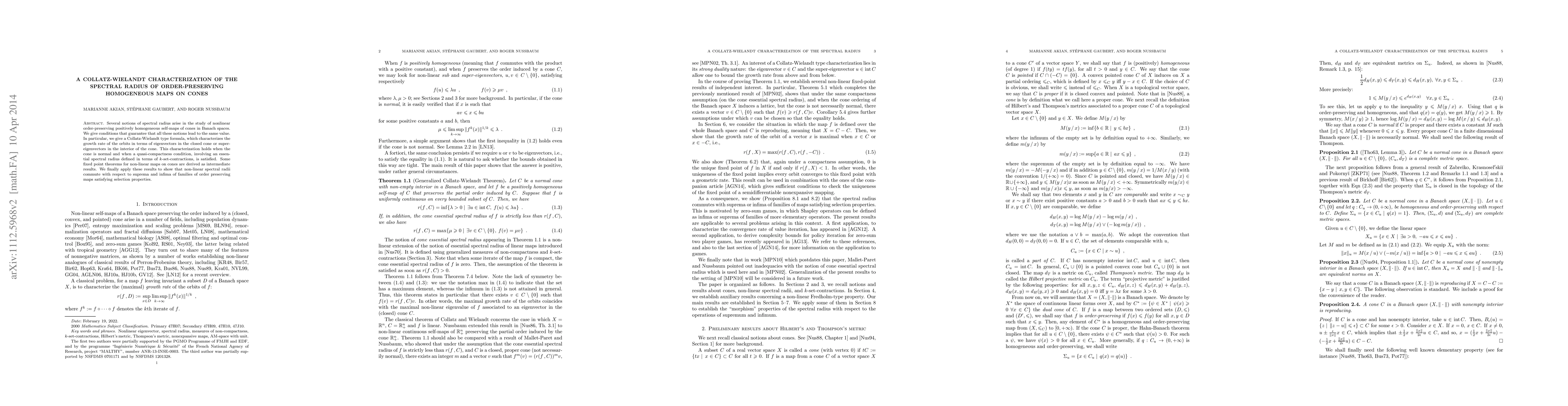 This paper provides a Collatz-Wielandt characterization for the spectral radius of order-preserving homogeneous maps on cones in Banach spaces, ensuring consistency across different spectral notions. It also establishes fixed point theorems and demonstrates that non-linear spectral radii commute with suprema and infima under certain conditions.