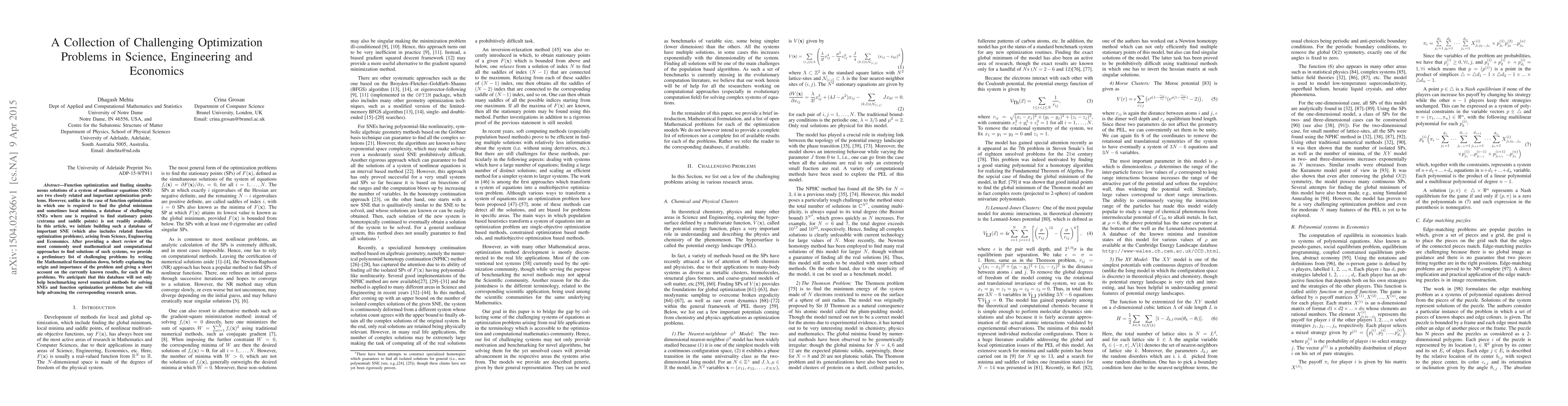 This research paper creates a database of challenging optimization problems in science, engineering, and economics, focusing on finding stationary points of nonlinear equations. The collection aims to facilitate benchmarking novel numerical methods and advancing research areas in function optimization and system of nonlinear equations.