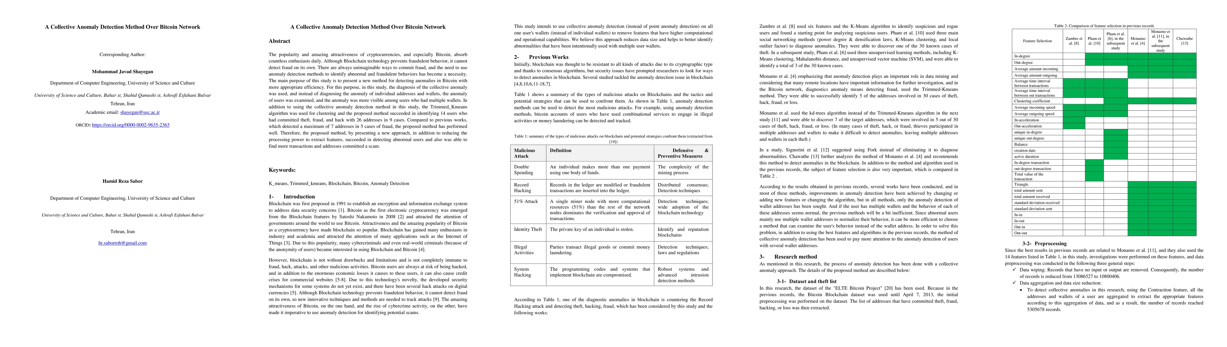 A new method for detecting anomalies in Bitcoin has been proposed, successfully identifying 14 users who committed theft, fraud, and hack with 26 addresses in 9 cases.