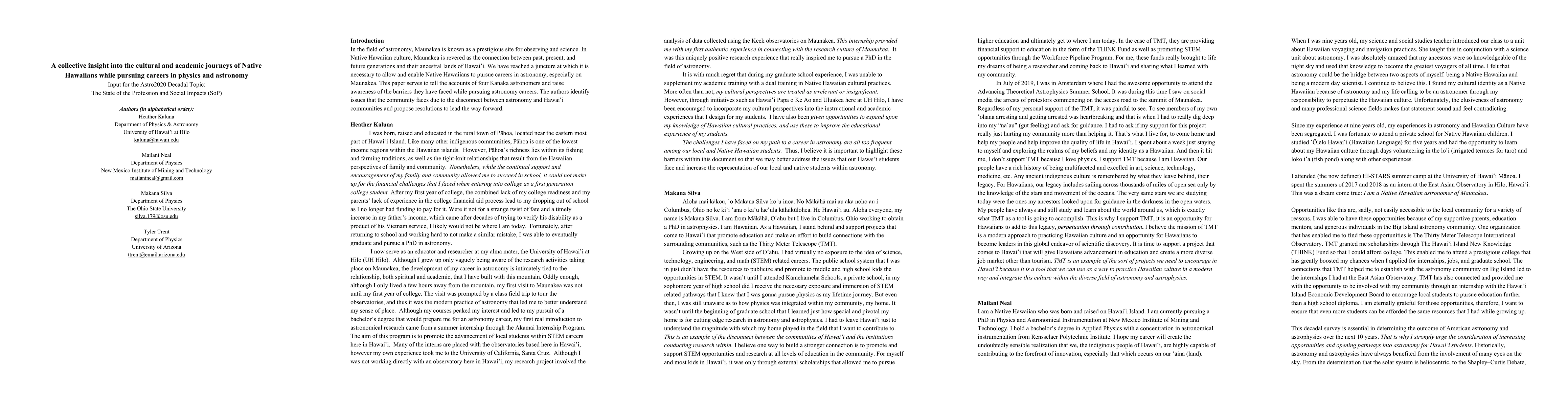 This paper explores the cultural and academic experiences of four Native Hawaiian astronomers pursuing careers in physics and astronomy, highlighting the barriers they face and proposing solutions to bridge the disconnect between astronomy and Hawaiian communities. The study emphasizes the importance of Maunakea in both scientific and cultural contexts.