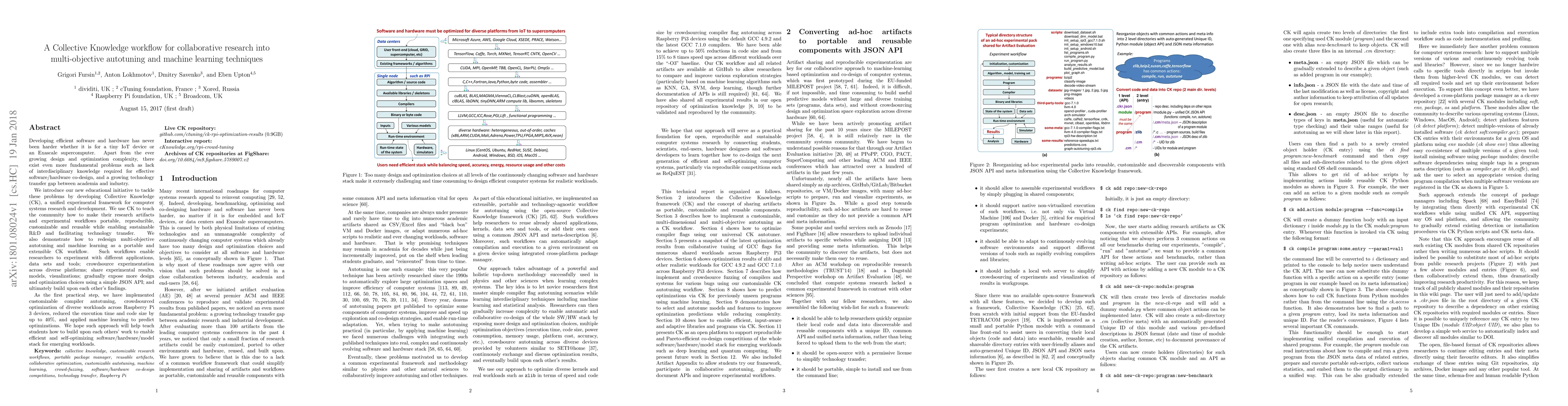 This paper introduces Collective Knowledge (CK), a framework aimed at fostering collaborative research in multi-objective autotuning and machine learning. It demonstrates how CK can make research artifacts reproducible and reusable, ultimately bridging the gap between academia and industry through technology transfer.