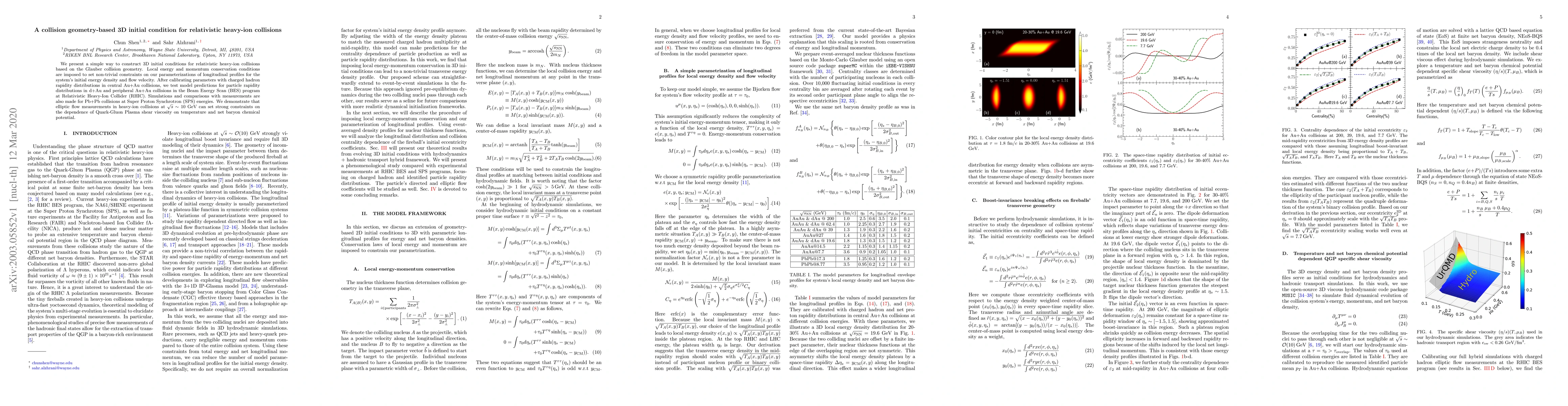 This paper proposes a 3D initial condition model for relativistic heavy-ion collisions based on the Glauber model, incorporating local energy and momentum conservation. The model is calibrated and tested against experimental data from RHIC and SPS, showing its potential to constrain the properties of Quark-Gluon Plasma.
