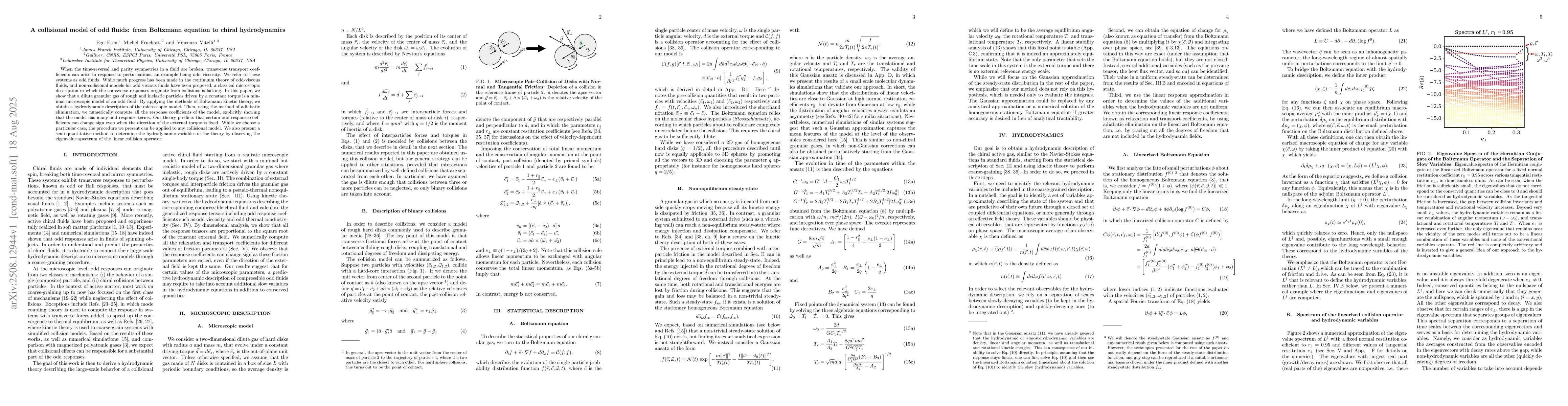 When the time-reversal and parity symmetries in a fluid are broken, transverse transport coefficients can arise in response to perturbations, an example being odd viscosity. We refer to these systems as odd fluids. While much progress has been made in the continuum theory of odd-viscous fluids, and non-collisional models for odd viscous fluids have been proposed, a classical microscopic description in which the transverse responses originate from collisions is lacking. In this paper, we show that a dilute granular gas of rough and inelastic particles driven by a constant torque is a minimal microscopic model of an odd fluid. By applying the methods of Boltzmann kinetic theory, we obtain a hydrodynamic description of the microscopic model. Then, using the method of adiabatic elimination, we numerically compute all the response coefficients of the model, explicitly showing that the model has many odd response terms. Our theory predicts that certain odd response coefficients can change sign even when the direction of the external torque is fixed. While we choose a particular case, the procedure we present can be applied to any collisional model. We also present a semi-quantitative method to determine the hydrodynamic variables of the theory by observing the eigenvalue spectrum of the linear collision operator.