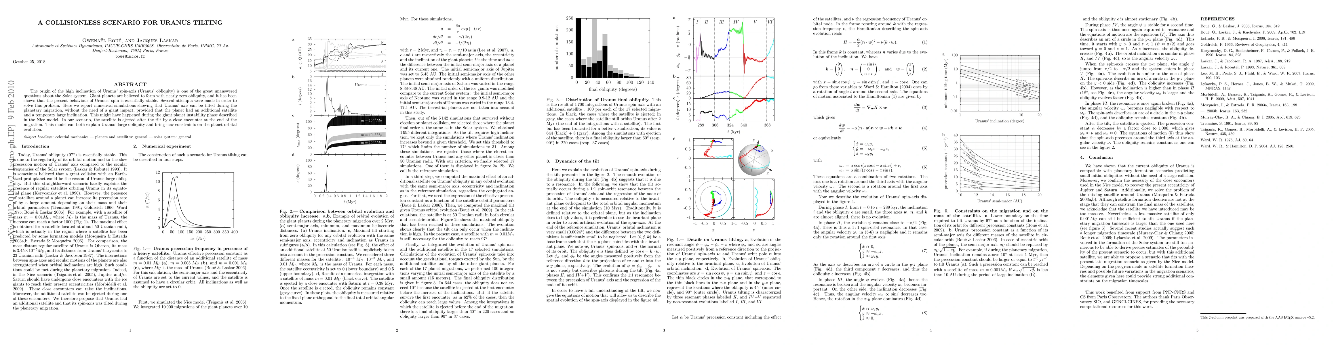 This study presents a novel approach to investigating the effects of planetary migration on Uranus' obliquity, using a combination of numerical simulations and theoretical modeling.