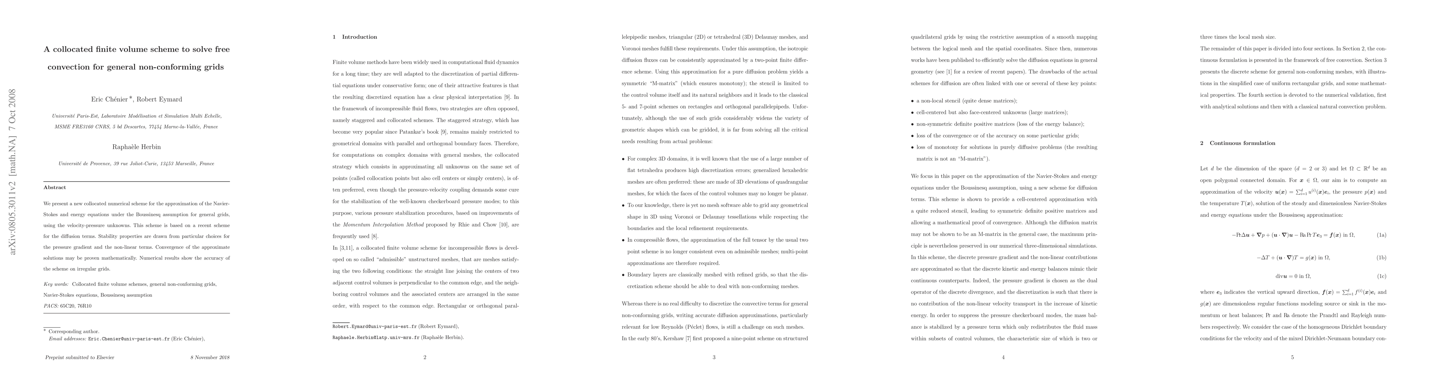 This paper introduces a collocated finite volume scheme for solving free convection problems using Navier-Stokes and energy equations under the Boussinesq assumption on general non-conforming grids. The scheme's stability and accuracy are demonstrated through numerical results on irregular grids.