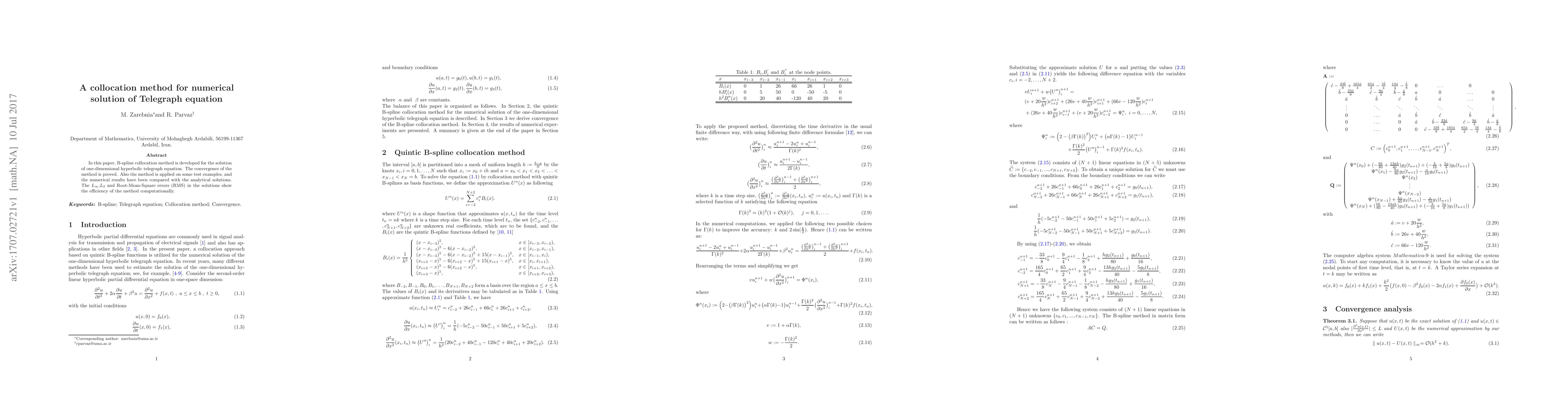 This paper develops a B-spline collocation method for solving the one-dimensional hyperbolic telegraph equation, proving its convergence and demonstrating its computational efficiency through comparisons with analytical solutions and error metrics.