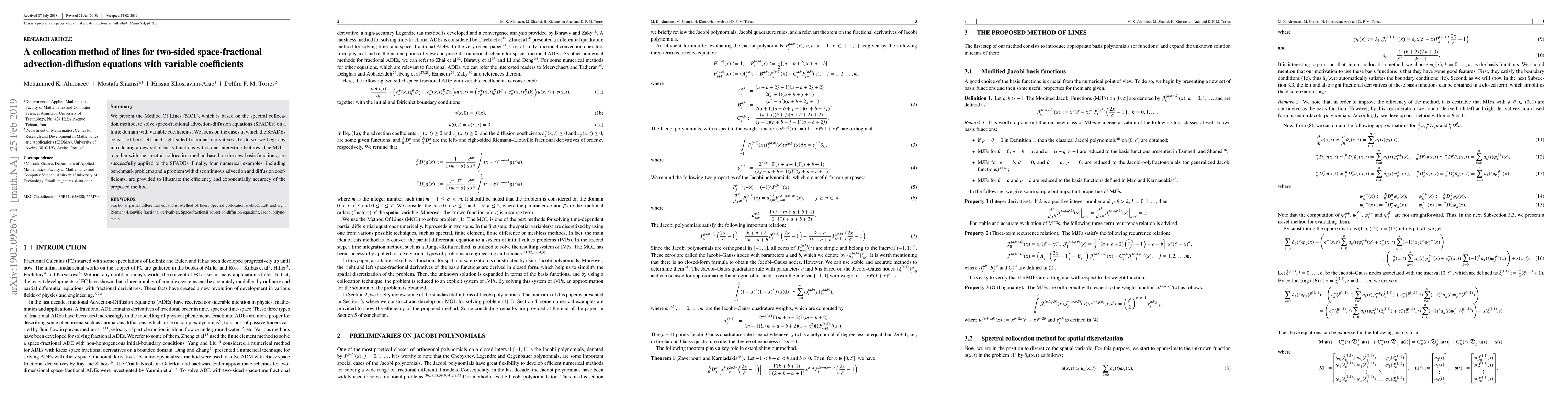 We present the Method Of Lines (MOL), which is based on the spectral collocation method, to solve space-fractional advection-diffusion equations (SFADEs) on a finite domain with variable coefficients. We focus on the cases in which the SFADEs consist of both left- and right-sided fractional derivatives. To do so, we begin by introducing a new set of basis functions with some interesting features. The MOL, together with the spectral collocation method based on the new basis functions, are successfully applied to the SFADEs. Finally, four numerical examples, including benchmark problems and a problem with discontinuous advection and diffusion coefficients, are provided to illustrate the efficiency and exponentially accuracy of the proposed method.