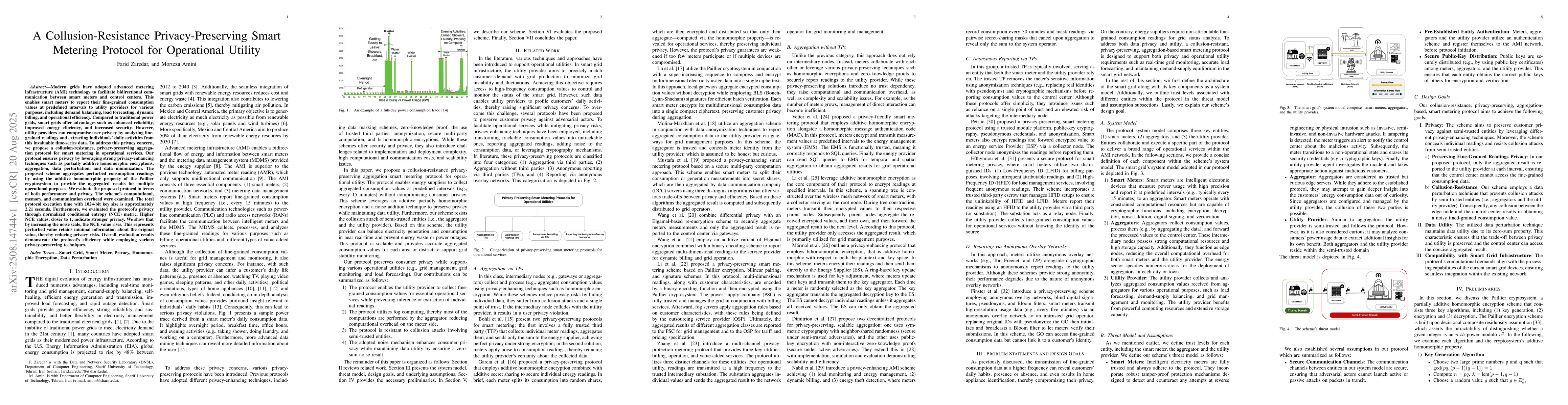 This work differs from existing research by combining multiple privacy-enhancing techniques, including partially additive homomorphic encryption, data perturbation, and data minimization, to create a comprehensive privacy-preserving smart metering protocol for operational utilities.