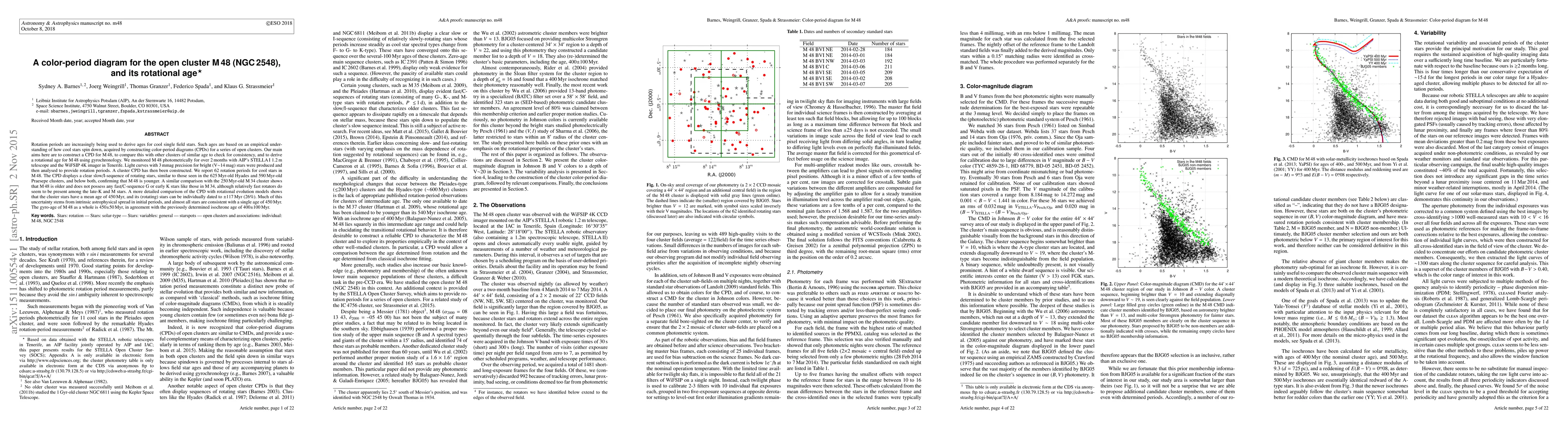 This paper constructs a color-period diagram for the open cluster M 48, reporting 62 rotation periods and deriving a mean rotational age of 450 Myr, with a 26% uncertainty. The study confirms M 48's youth relative to other clusters and aligns with previous isochrone age estimates.