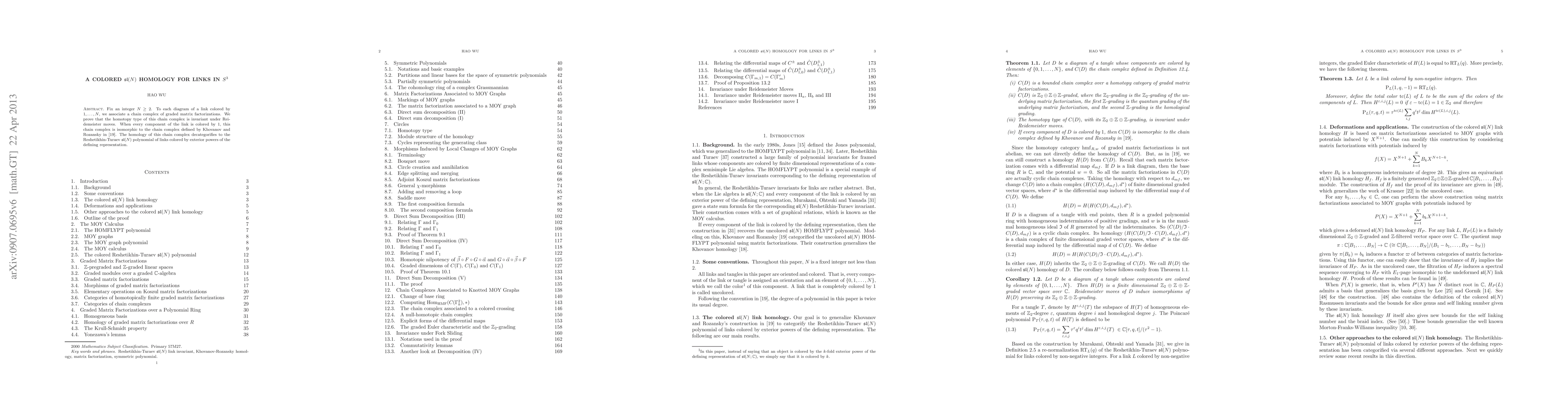 This paper constructs a colored sl(N)-homology for links in S^3 by associating a chain complex of graded matrix factorizations to each colored link diagram. It proves the homotopy invariance under Reidemeister moves and shows its equivalence to Khovanov-Rozansky's complex when all components are colored identically, leading to the Reshetikhin-Turaev sl(N) polynomial.