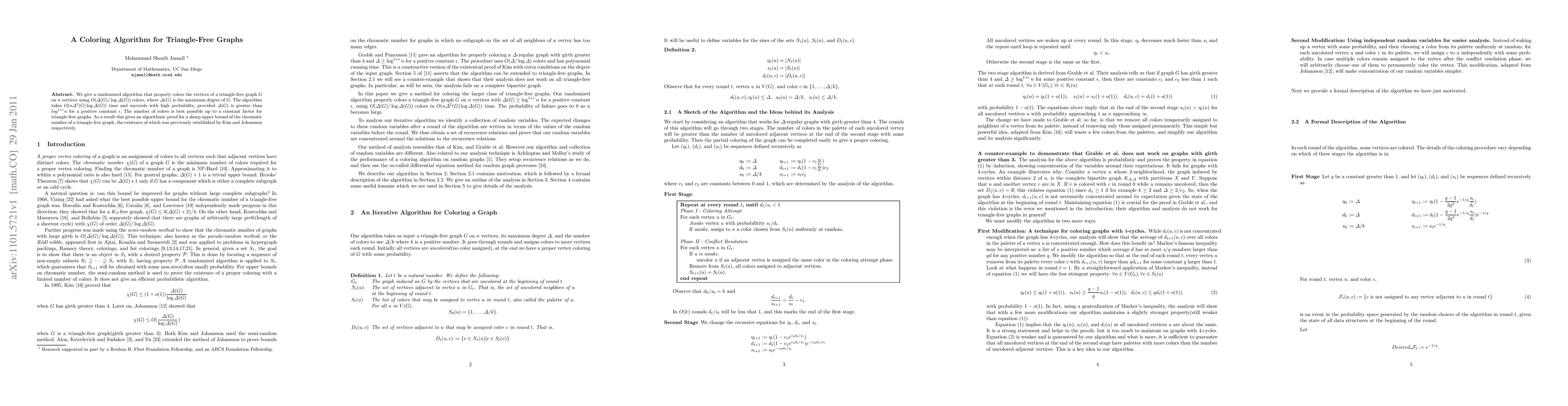This paper presents a randomized algorithm that efficiently colors triangle-free graphs using O(\Delta(G)/log \Delta(G)) colors, where \Delta(G) is the maximum degree. The algorithm runs in O(n\Delta^2(G)log\Delta(G)) time and succeeds with high probability when \Delta(G) exceeds log^{1+{\epsilon}}n.