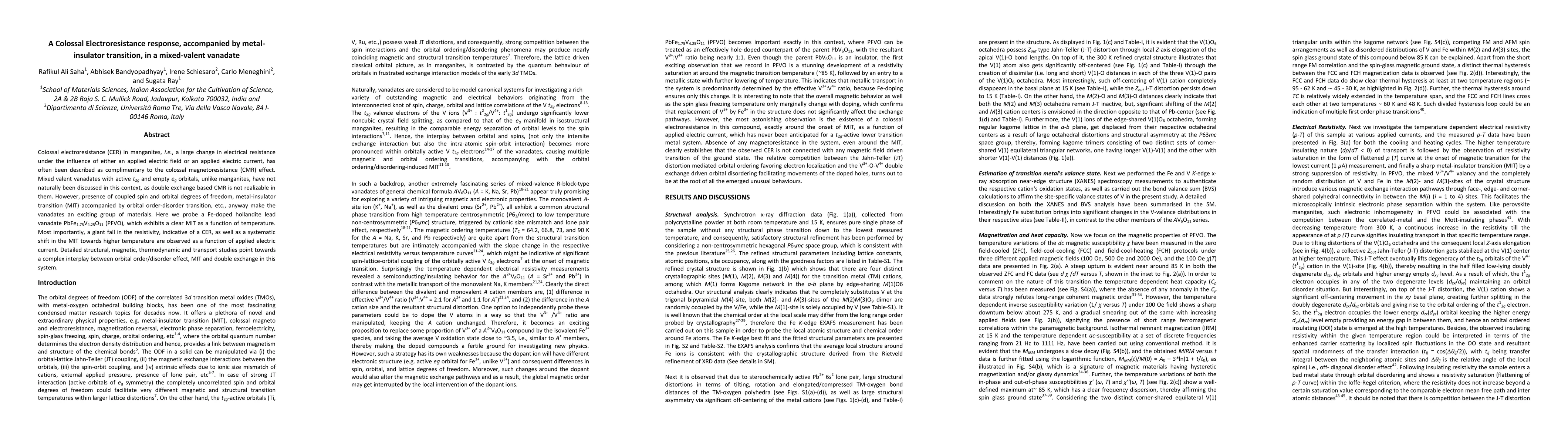 This paper investigates Fe-doped PbFe1.75V4.25O11, revealing colossal electroresistance and a metal-insulator transition influenced by applied electric current. The study highlights a complex interplay between orbital dynamics, the metal-insulator transition, and double exchange mechanisms in mixed-valent vanadates.