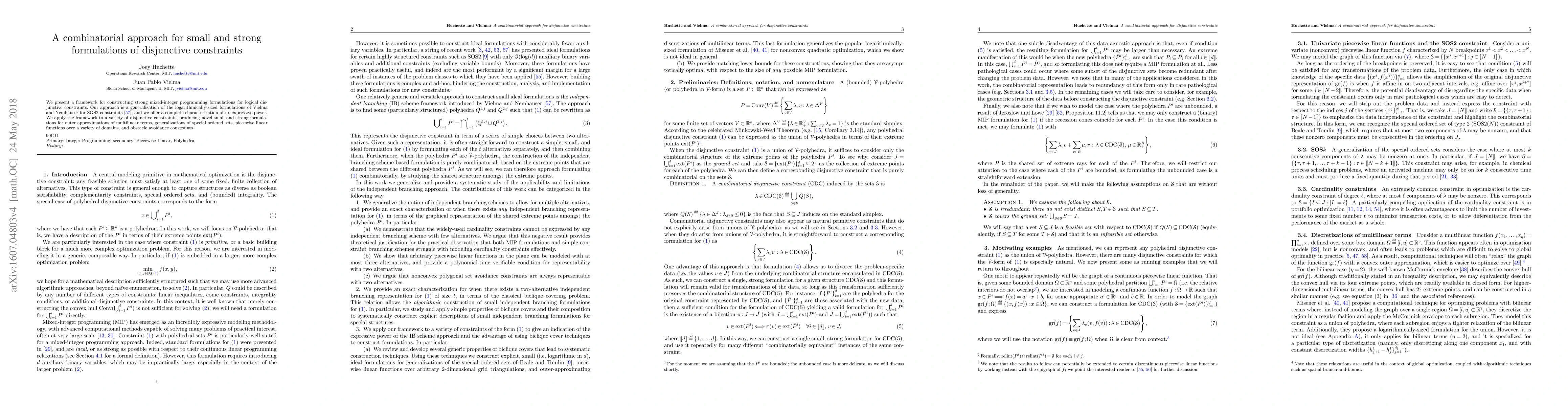 This paper introduces a combinatorial framework for generating strong mixed-integer programming formulations for disjunctive constraints, extending previous work on SOS2 constraints. It provides novel small and robust formulations for various complex constraints, including multilinear terms and piecewise linear functions.