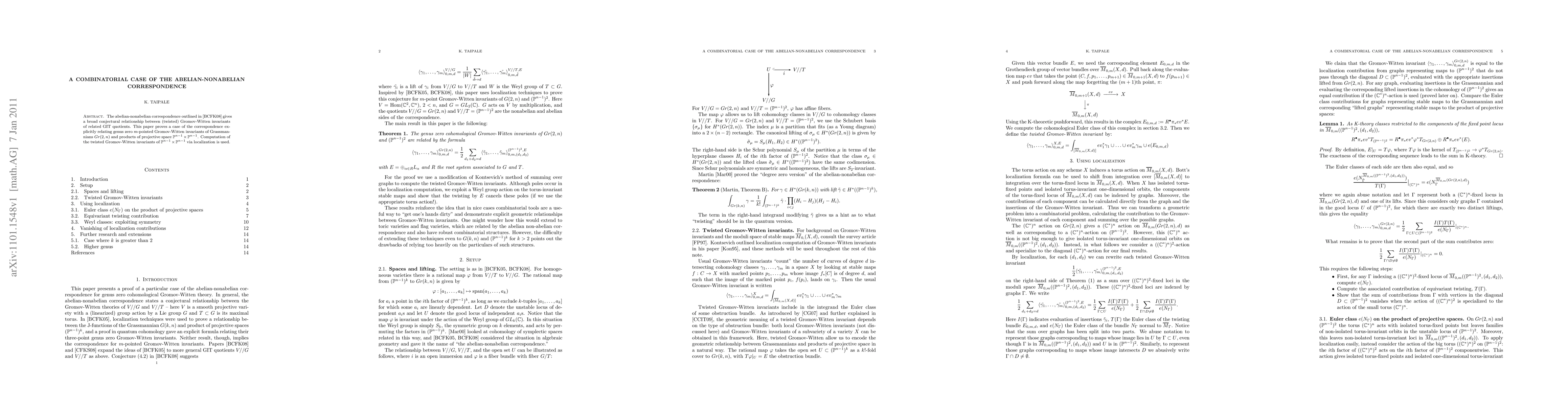 This paper proves a specific instance of the abelian-nonabelian correspondence relating genus zero m-pointed Gromov-Witten invariants for Grassmannians and products of projective spaces, using localization to compute invariants and comparing moduli spaces for completion.